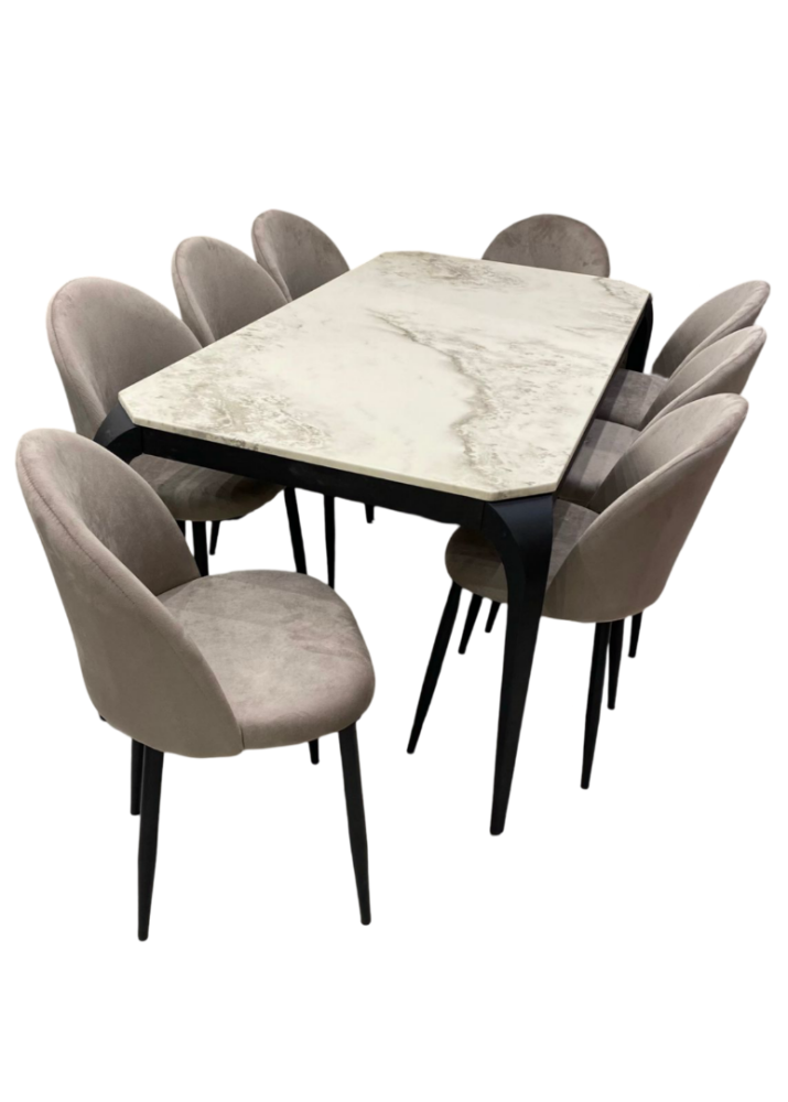 احصل علي طاوله طعام فاخره مصنوعه من الحديد و الرخام مع 8 كرسي أنيقه .