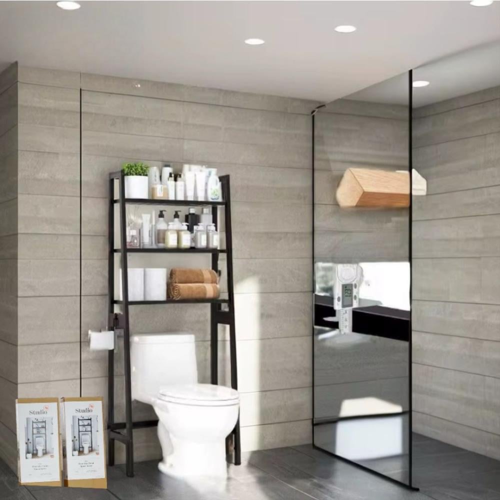 - التصميم: تصميم سلمي بثلاثة أرفف واسعة وحامل مناديل تواليت مدمج.