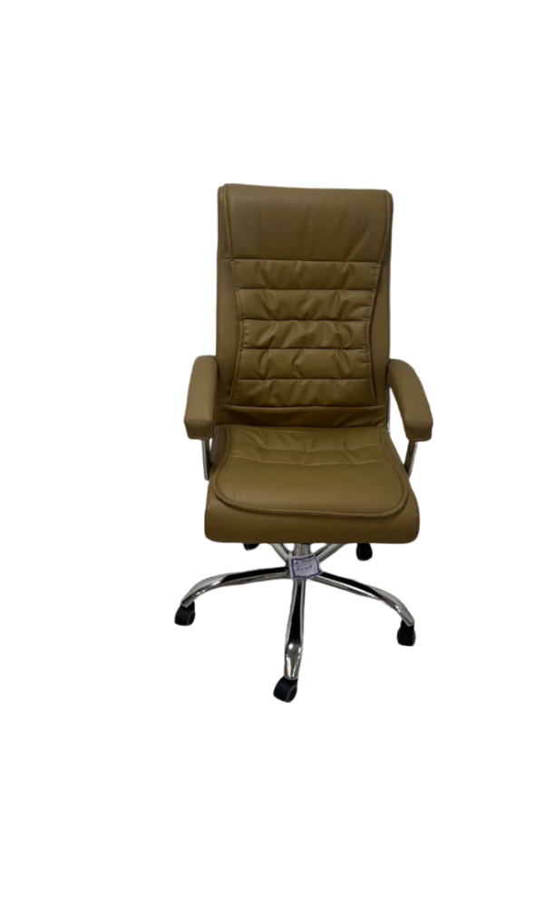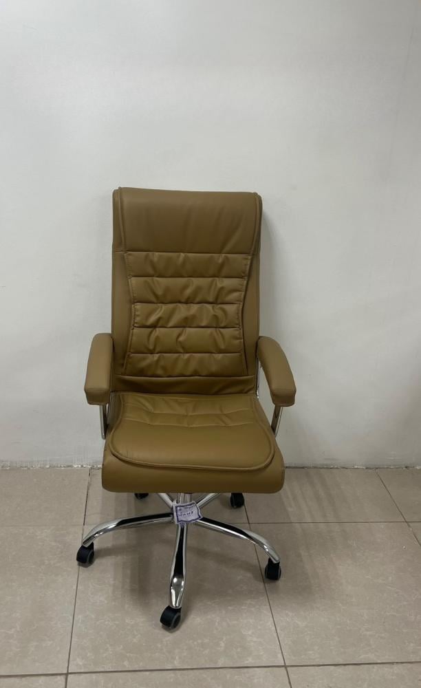 - تصميم أنيق: لمسة الجلد البني والمعنقات على الظهر تمنحه طابعًا فاخرًا يناسب المكاتب الراقية أو المساحات المنزلية.