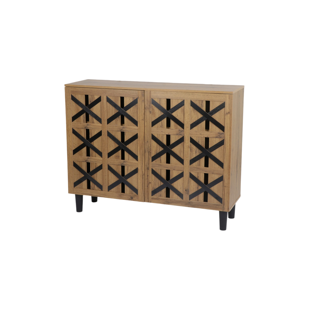 - الأبواب مزينة بزخارف هندسية على شكل X، مما يضفي لمسة فنية أنيقة على التصميم.