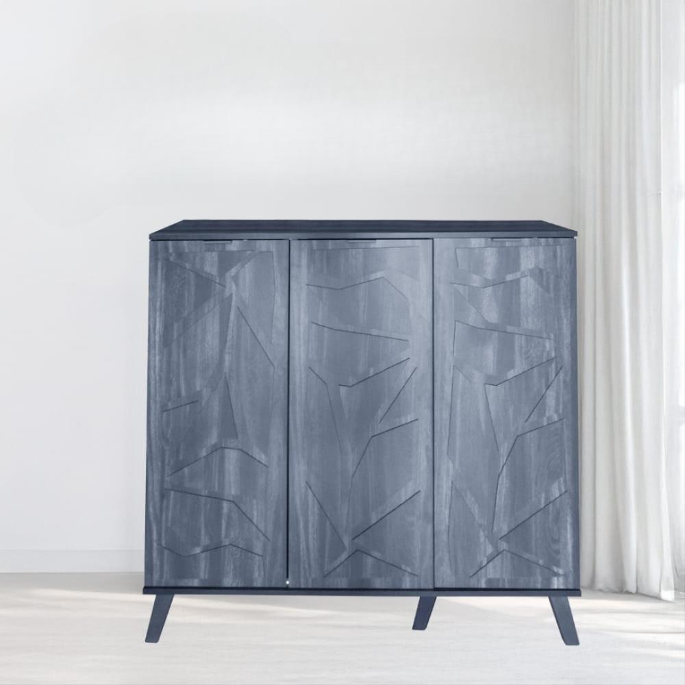 - تصميم فني ونقوش هندسية: يتميز الدولاب بنقوش هندسية بارزة على الأبواب، تمنحه مظهرًا ثلاثي الأبعاد وعصريًا، مما يجعله قطعة فنية بحد ذاتها تضفي لمسة من الجمال على أي ركن في منزلك.