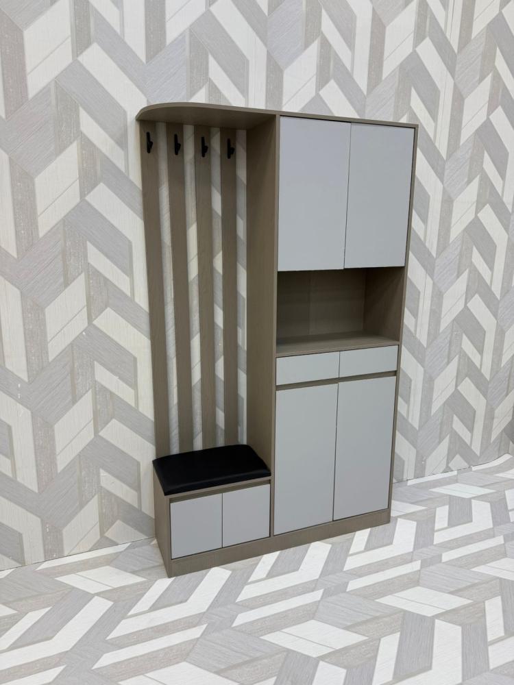 خزانة أحذية متعددة الوظائف مع علاقة ملابس، مصممة خصيصًا لتنظيم مدخل منزلك بذكاء وأناقة. يجمع تصميمها العصري بين اللون الخشبي الطبيعي والرمادي الفاتح، مما يضفي لمسة من الحداثة والبساطة على ديكورك. بفضل أبعادها المناسبة (عرض 120 سم وارتفاع 2 متر)، توفر الخزانة مساحة تخزين واسعة ومتكاملة. تحتوي على مساحة مخصصة لتعليق المعاطف والأوشحة، بالإضافة إلى مقعد صغير مريح للجلوس أثناء ارتداء الأحذية، مع وحدات تخزين مغلقة وعملية للأحذية والأغراض المختلفة