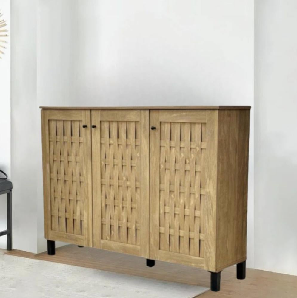 هذا الدولاب الأنيق هو حل مثالي لتخزين أحذيتك بشكل منظم وجمالي. يتميز بتصميمه العصري الذي يجمع بين الخشب الطبيعي والتصميم المنقوش، مما يجعله ينسجم مع مختلف ديكورات المنزل.