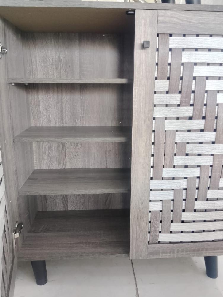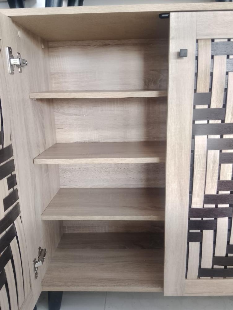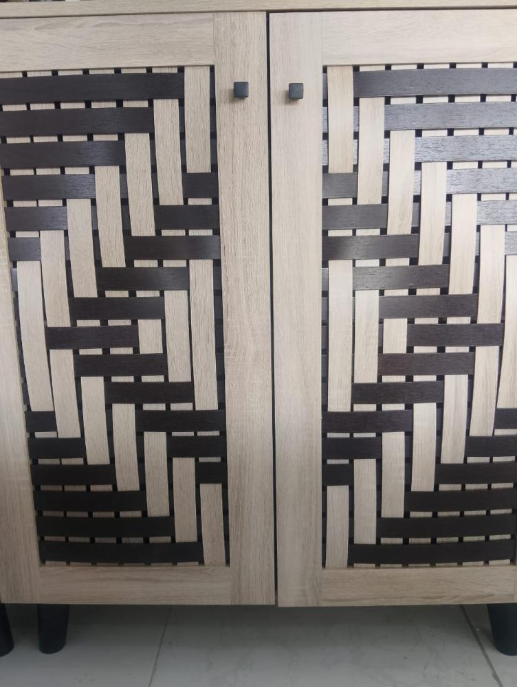 حوّل مدخل منزلك إلى مساحة أنيقة ومنظمة مع دولاب الأحذية العصري. يتميز هذا الدولاب بتصميمه المبتكر الذي يجمع بين الخطوط النظيفة والنقوش الفريدة على الأبواب، مما يجعله قطعة مميزة تضيف لمسة جمالية إلى منزلك، بالإضافة إلى وظيفته الأساسية في التخزين.