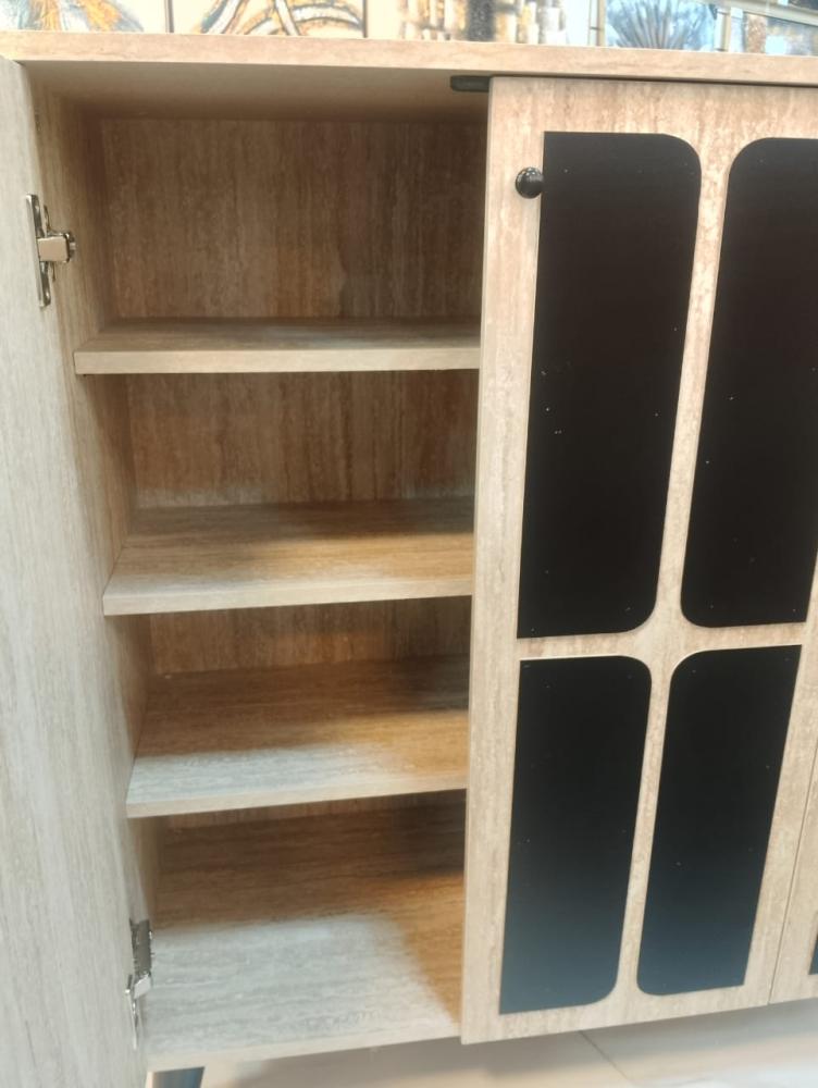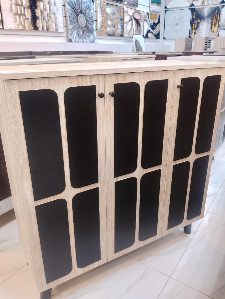 دولاب أحذية عملي وأنيق بتصميم عصري يجمع بين الجمال والوظيفة. الدولاب مصنوع من خشب الماليزي بلون بيج أنيق مع تفاصيل باللون الأسود، مما يضفي لمسة من الدفء والجمال على أي مساحة. متوفر بحجمين مختلفين (60 سم و 90 سم) ليناسب مختلف المساحات.