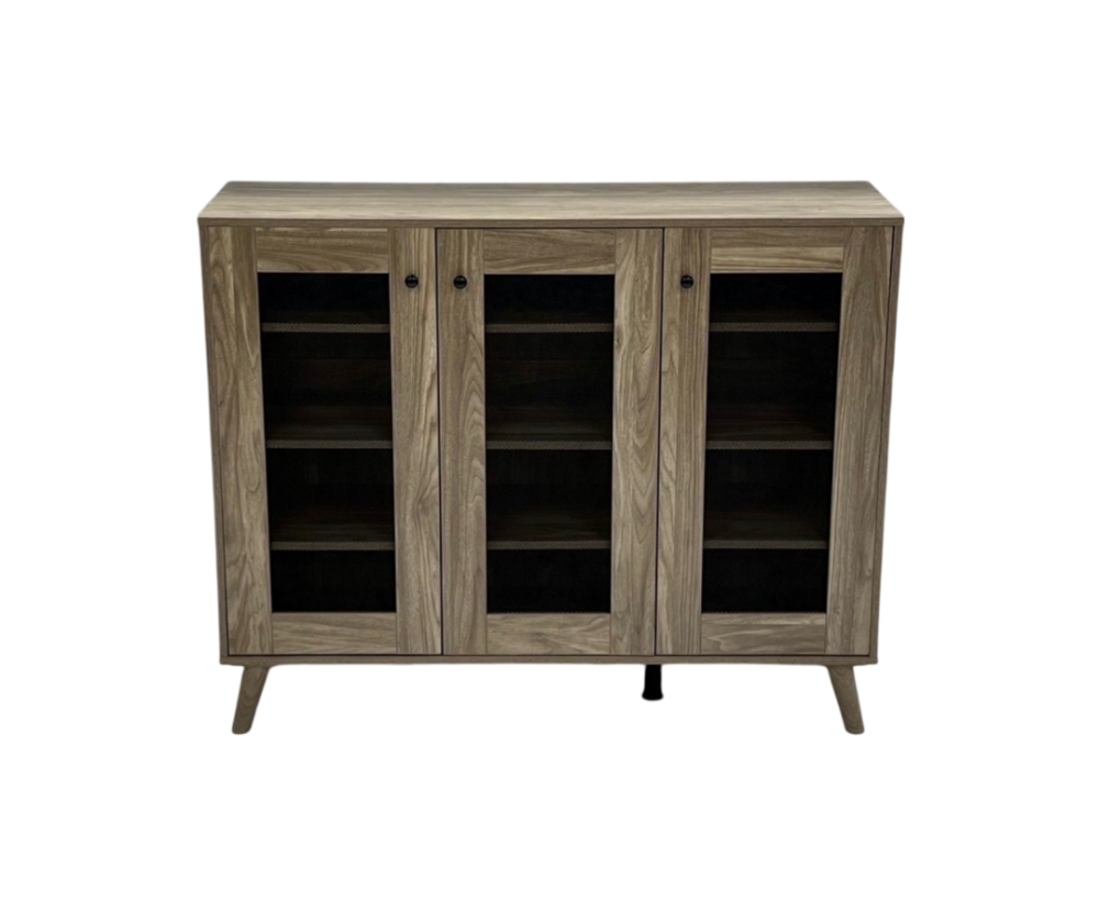 - تصميم عملي: يسهل الوصول إلى الأحذية بفضل الأبواب الزجاجية الشفافة والأرفف المنظمة.