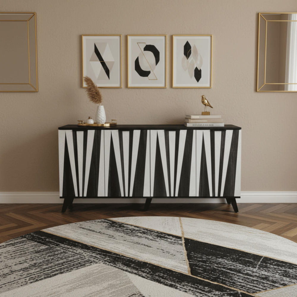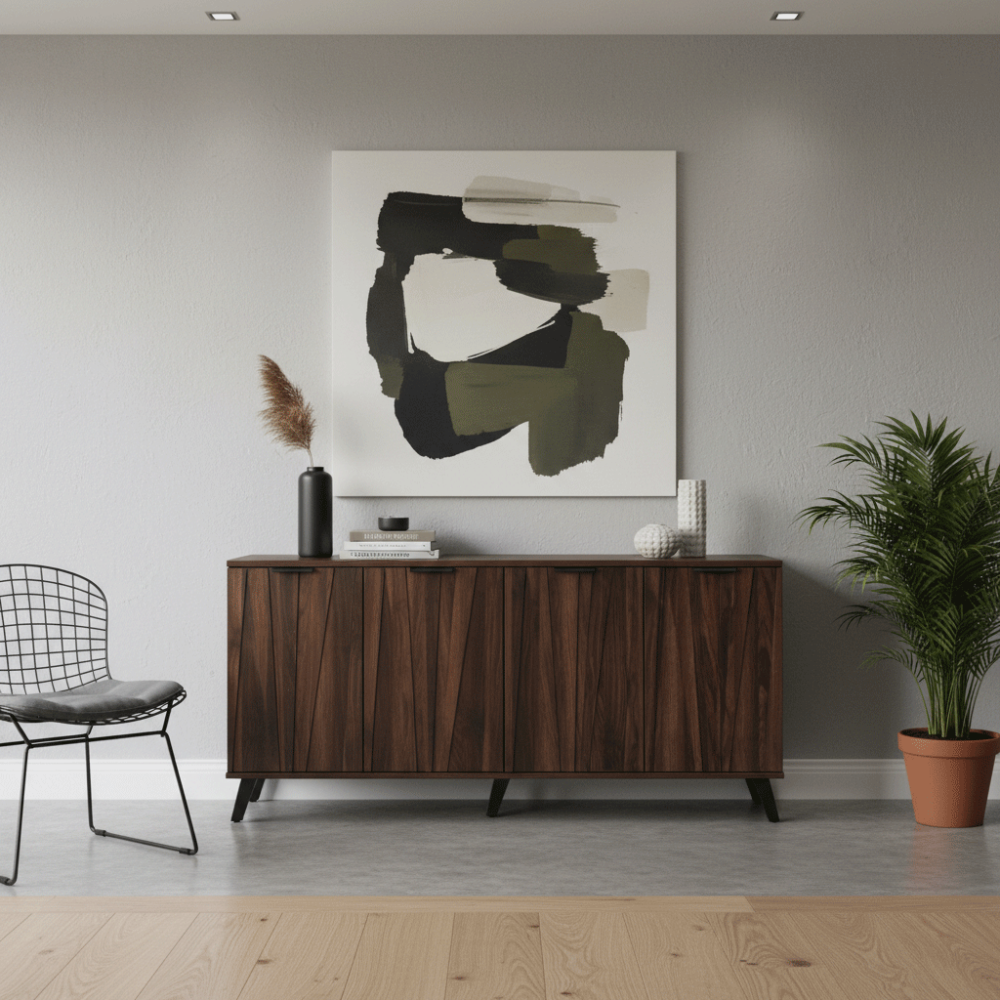 - الاستخدام: يمكن استخدامه كـ دولاب استقبال، بوفيه جانبي لغرفة الطعام، أو خزانة تخزين في غرفة المعيشة.