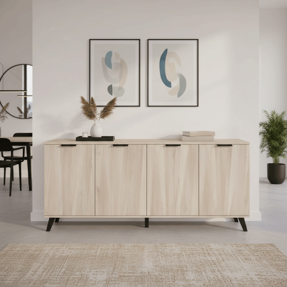 - مساحة تخزين كبيرة: أربعة أبواب داخلية تمنحك سعة تخزين مثالية لتنظيم الأدوات المنزلية أو أغراض الاستقبال.