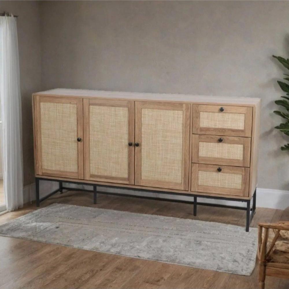 - تصميم متعدد الاستخدامات: يمكن استخدامه كدولاب بوفيه في غرفة الطعام أو كركن قهوة أنيق في غرفة المعيشة أو منطقة الاستقبال.