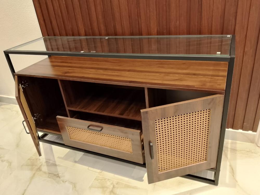 ارتقِ بأناقة غرفة المعيشة الخاصة بك مع دولاب البوفيه المميز بطول 140 سم. هذا الدولاب الأنيق والعصري هو الحل المثالي لتخزين أدوات المائدة والأواني والأطباق الخاصة بك بشكل منظم ومرتب، مع إضافة لمسة جمالية راقية إلى مساحتك.