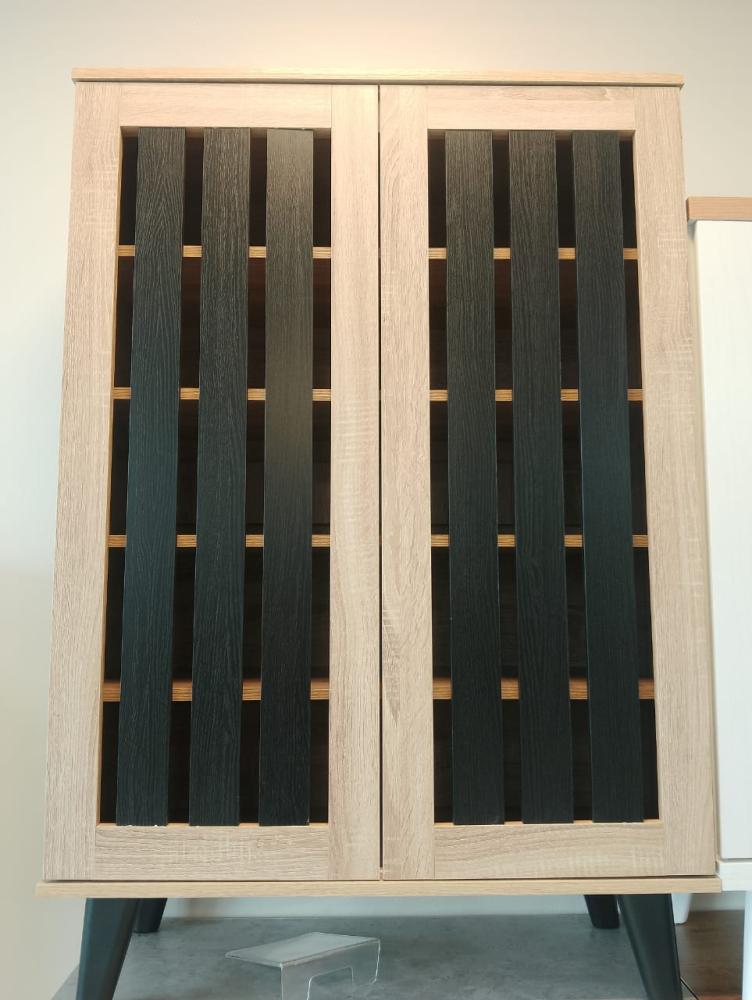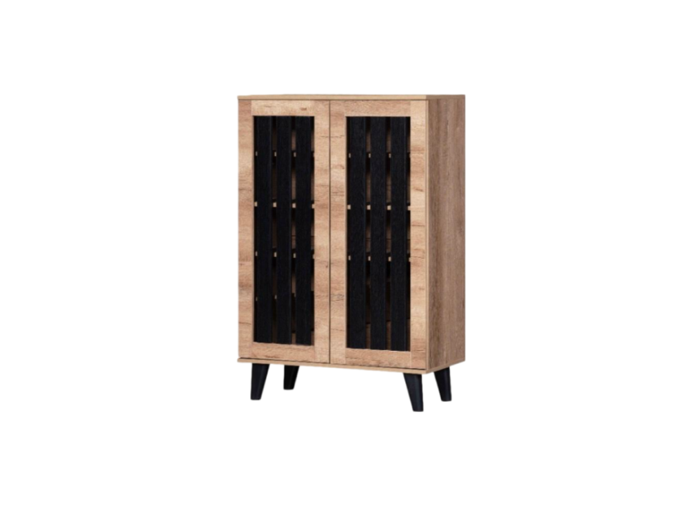 أضف لمسة من التنظيم العصري والأناقة الفريدة إلى مدخل منزلك أو غرفة نومك مع جزامه مودرن صُممت هذه الجزامة لتكون أكثر من مجرد مكان لتخزين الأحذية؛ إنها قطعة ديكورية مميزة تجمع بين العملية والجمال الجمالي. تتميز ببابين بتصميم فريد يجمع بين الألواح الخشبية المتينة باللون الخشبي الدافئ (و البني)، مع شرائط عمودية باللون الأسود الداكن و البني الغامق تضفي عليها طابعًا عصريًا ومميزًا.