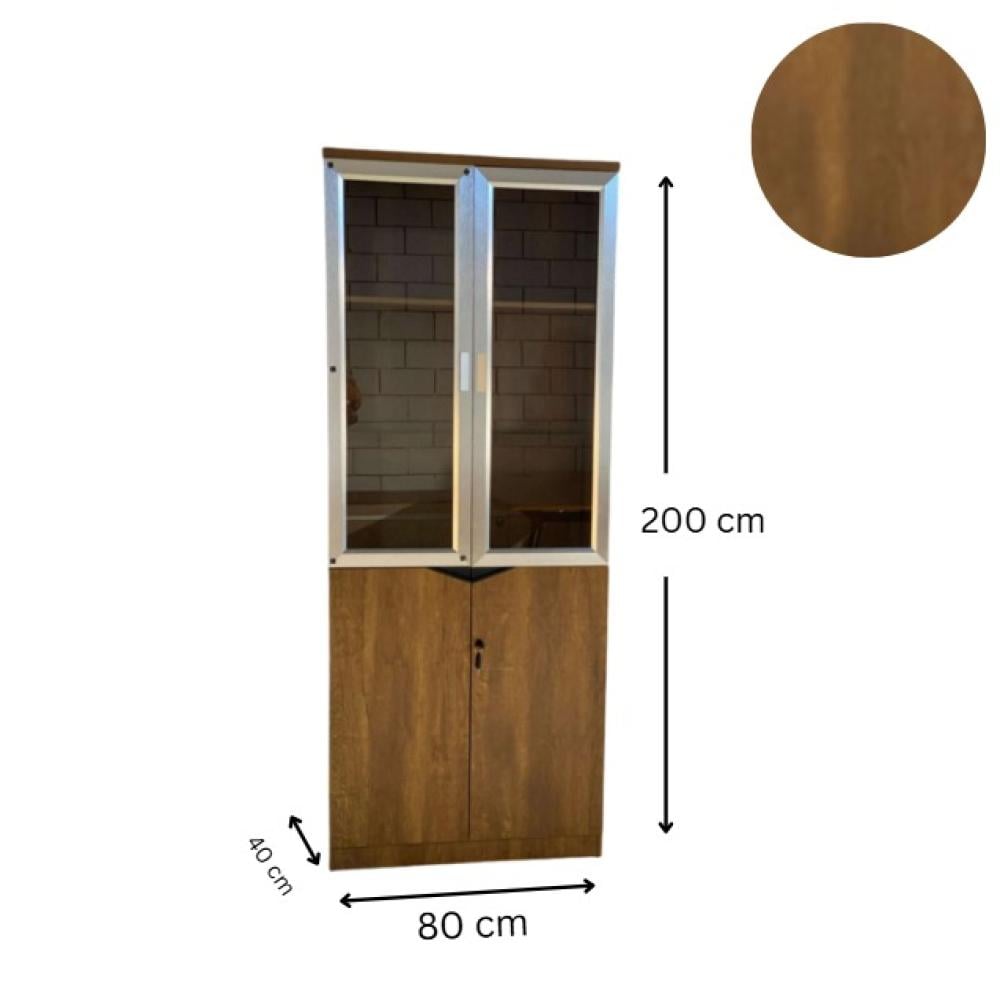 دولاب مكتبي ببابين زجاجيين وخشبيين: تصميم متعدد الاستخدامات.