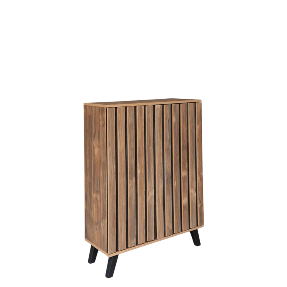 هذا الدولاب ذو البابين هو قطعة أثاث مثالية لمحبي التصميم الحديث والبسيط. يتميز بهيكله المصنوع من خشب عالي الجودة مع لمسات طبيعية، مما يضيف لمسة دافئة لأي غرفة. يمتاز بتصميمه بخطوط طولية أنيقة تمنح الدولاب مظهراً عصرياً. الأرجل المعدنية المطلية باللون الأسود توفر استقرارًا ممتازًا وتكمل المظهر الجمالي.