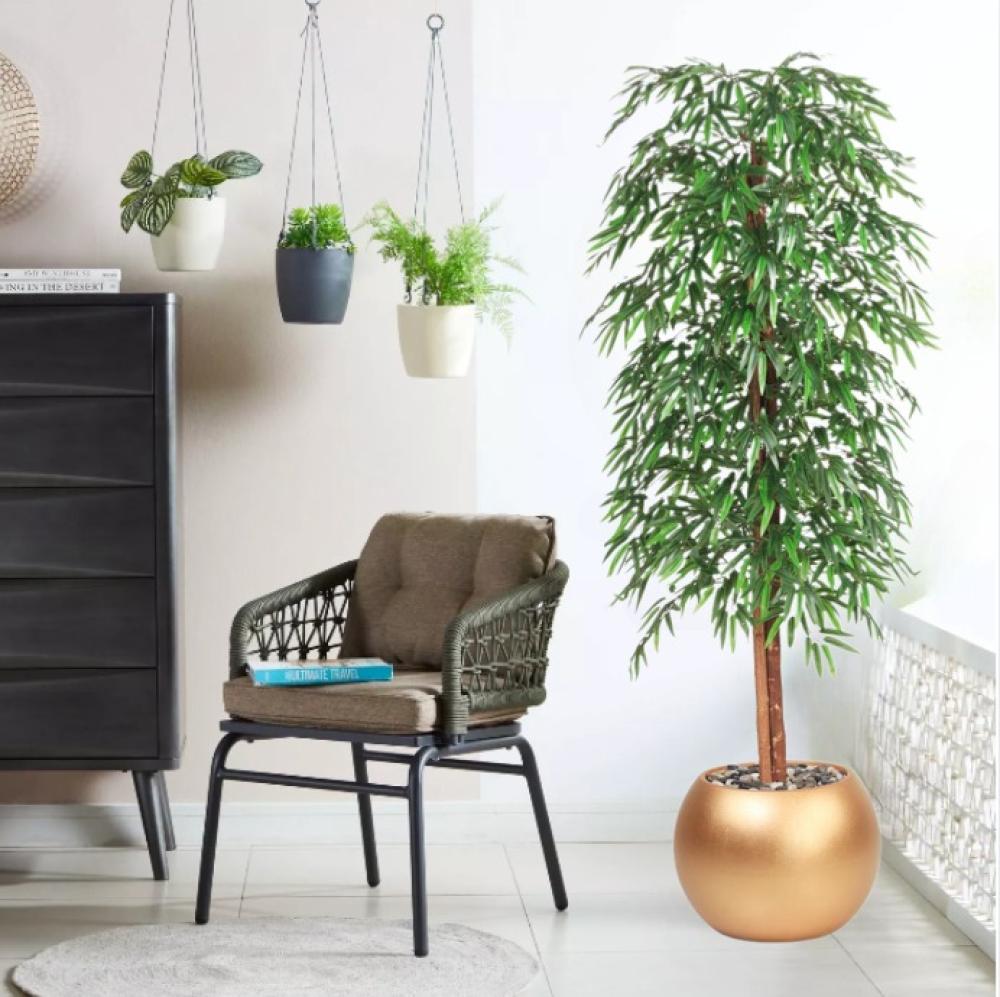 أضف لمسة طبيعية أنيقة إلى أي مساحة داخلية مع شجرة البامبو الصناعية المصممة بعناية لتعكس جمال ورونق النباتات الطبيعية. تتميز بأوراق كثيفة بلون أخضر غامق جذاب، مع ساق واقعي المظهر يمنحها حضورًا فخمًا في المكان.