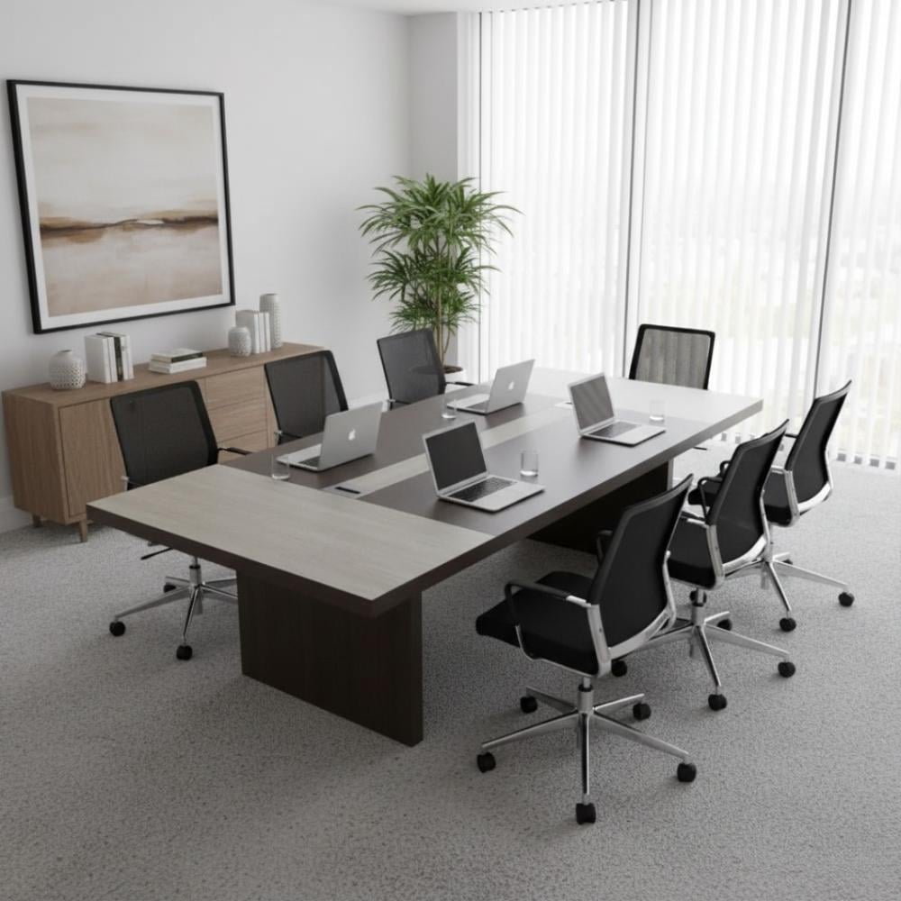 تجمع بين الأناقة والوظائف العملية. تتميز الطاولة بمظهرها الجذاب والمتين، وهي مثالية لإضفاء لمسة من الرقي على أي غرفة اجتماعات أو مكتب تنفيذي.