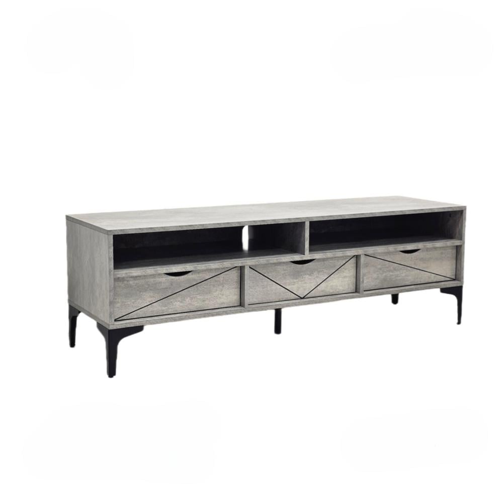 مساحة تخزين واسعة: توفر الطاولة مساحة تخزين واسعة بفضل الأدراج الثلاثة والأرفف المفتوحة، مما يسمح لك بتنظيم أجهزة التلفزيون وأجهزة التحكم عن بعد والأجهزة الأخرى بسهولة.