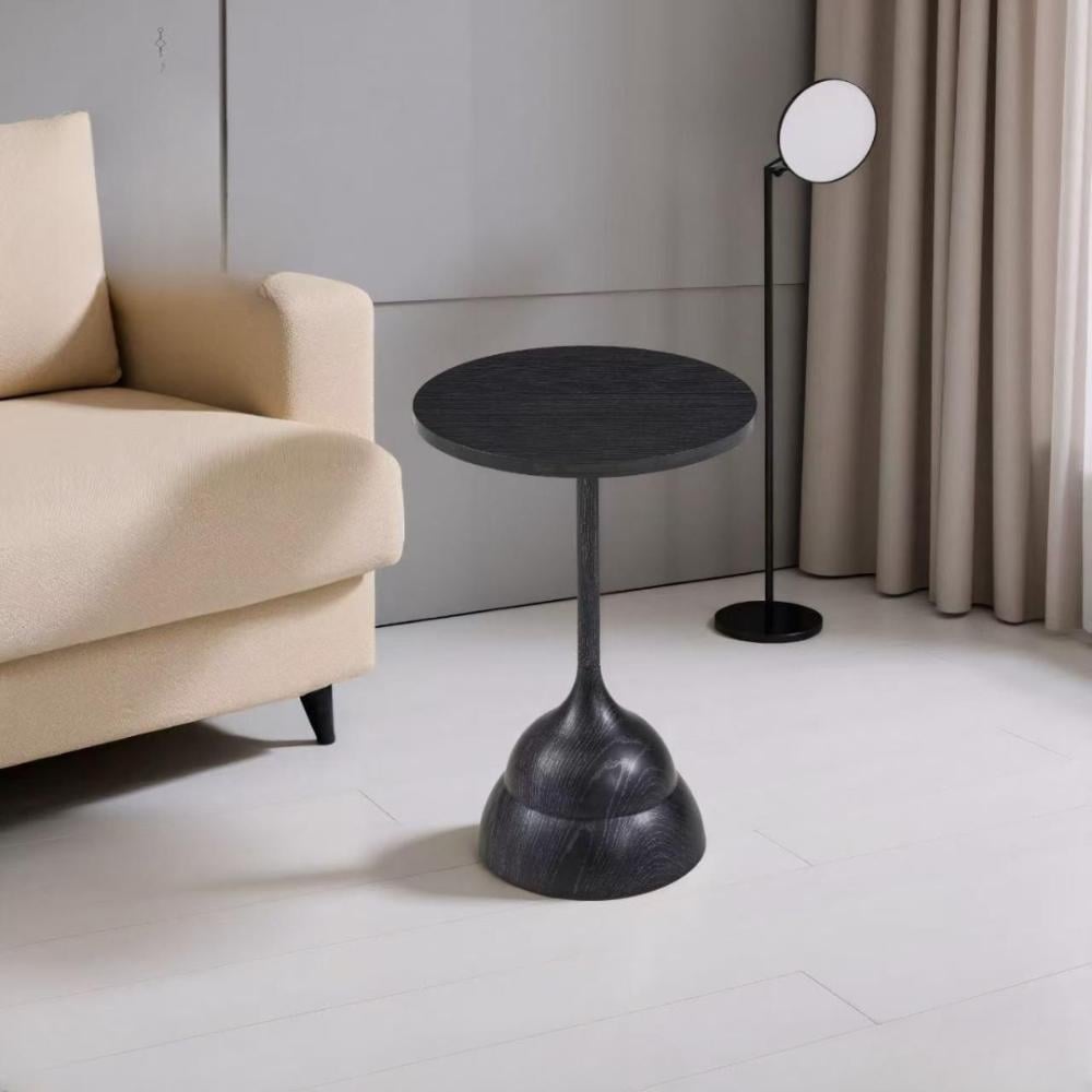 طاولة خدمة أنيقة مفردة بتصميم عصري مميز، تتميز بقاعدة خشبية منحوتة على شكل فطر أو مخروط مقلوب بخطوط انسيابية جميلة. تجمع بين الأناقة الطبيعية والوظيفة العملية، مع سطح دائري مثالي للاستخدامات المتعددة. صُنعت من الخشب الطبيعي عالي الجودة بلون بنى واسود فاخر دافئ يضفي لمسة طبيعية راقية على أي مساحة.