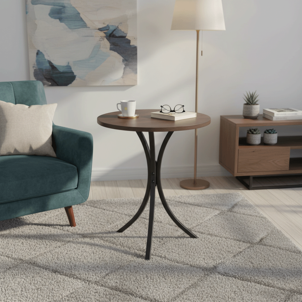 1. تصميم عصري فريد: بفضل تصميمها الدائري والأرجل المعدنية المنحنية، تعد طاولة جانبية دائرية قطعة ديكور قائمة بذاتها.