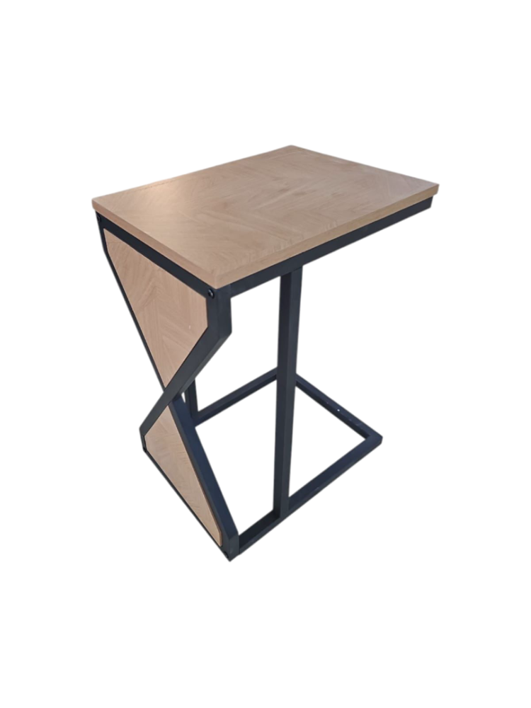 طاولة خدمة عصرية وأنيقة تتميز بتصميم هندسي فريد على شكل معكوس مصنوع من هيكل معدني أسود متين يوفر ثباتًا استثنائيًا ومظهرًا عصريًا لافتًا، وتعلوها سطح مستطيل من الخشب عالي الجودة متوفر بمجموعة متنوعة من الألوان العصرية والجذابة، مما يجعلها قطعة أثاث عملية وجمالية مثالية للاستخدام بجانب الأرائك أو الكراسي أو كطاولة سرير جانبية، مضيفة لمسة فنية وعصرية إلى أي مساحة في منزلك.