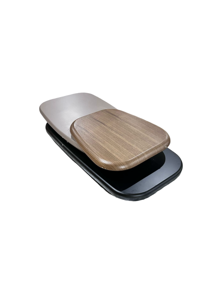 • سطحان أنيقان وعمليان: سطح سفلي ثابت وسطح علوي دوار بألوان ومواد متناسقة.