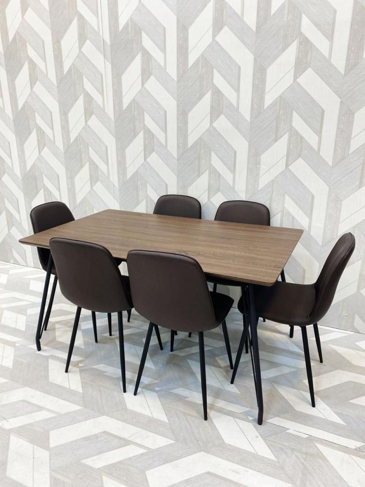- 6 كراسي مريحة ومبطنة: تصميم بظهر منحني ومقعد مغلف بجلد صناعي ناعم، يوفر راحة مثالية خلال الجلوس الطويل.