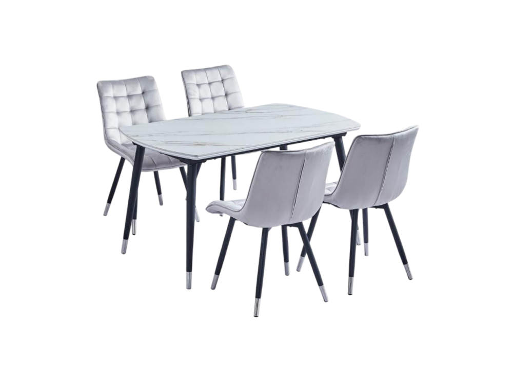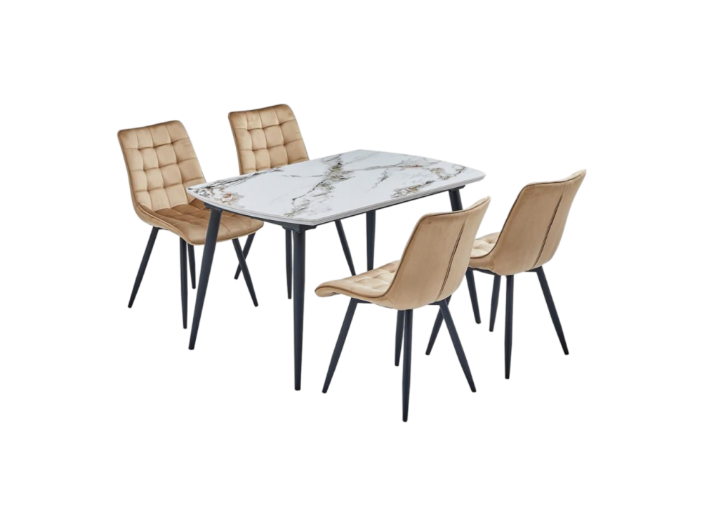- سطح سيراميك أنيق: يتميز سطح الطاولة بتصميم رخامي أنيق يسهل تنظيفه ومقاوم للخدوش والبقع.