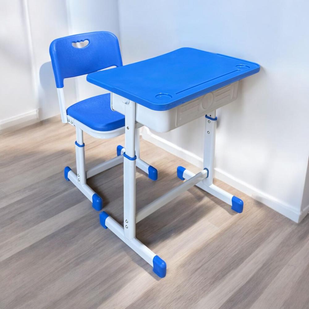 طاولة مدرسية متينة وعصرية باللون الأزرق الجذاب، مصممة براحة تامة وقابلية لتعديل الارتفاع لتناسب مختلف الأعمار. مزودة بدرج تخزين عملي وحامل أقلام، لتوفير بيئة تعليمية منظمة ومحفزة تضمن التركيز والإنتاجية للطلاب. مثالية للمدارس والمنازل، فهي استثمار في تعليم أبنائنا ومستقبلهم.