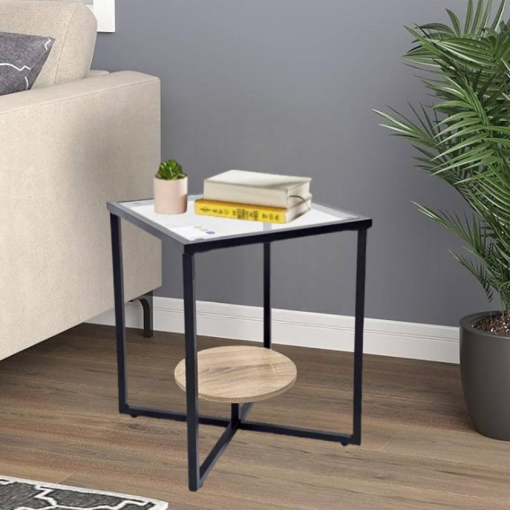 - أعلى زجاجي شفاف: يمنح الطاولة مظهراً عائماً وخفيفاً، كما يسهل تنظيفه.