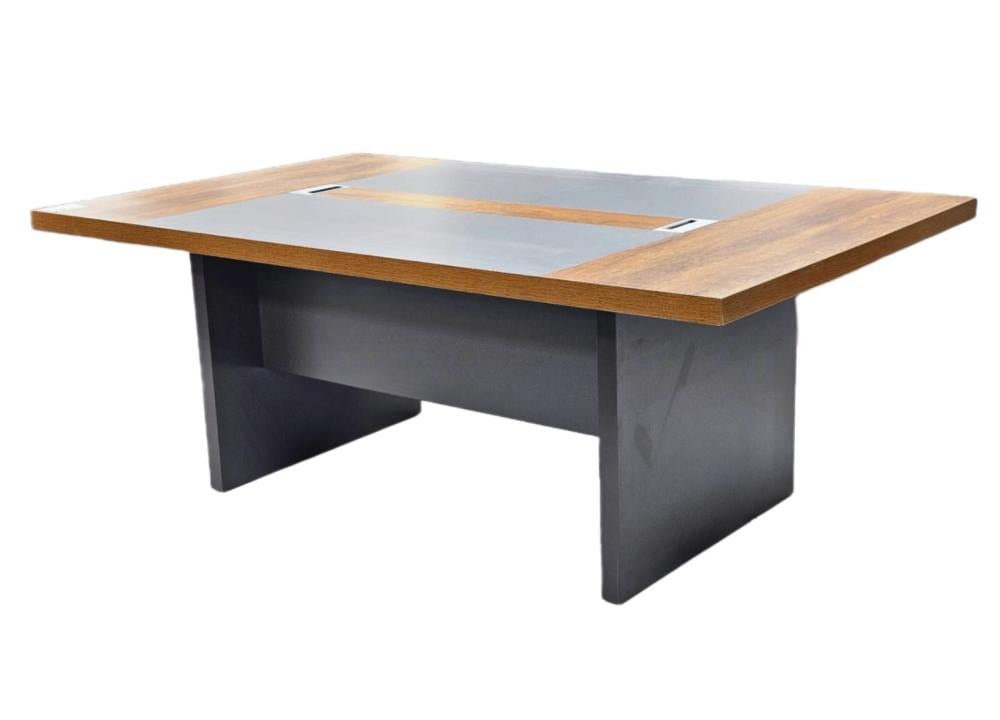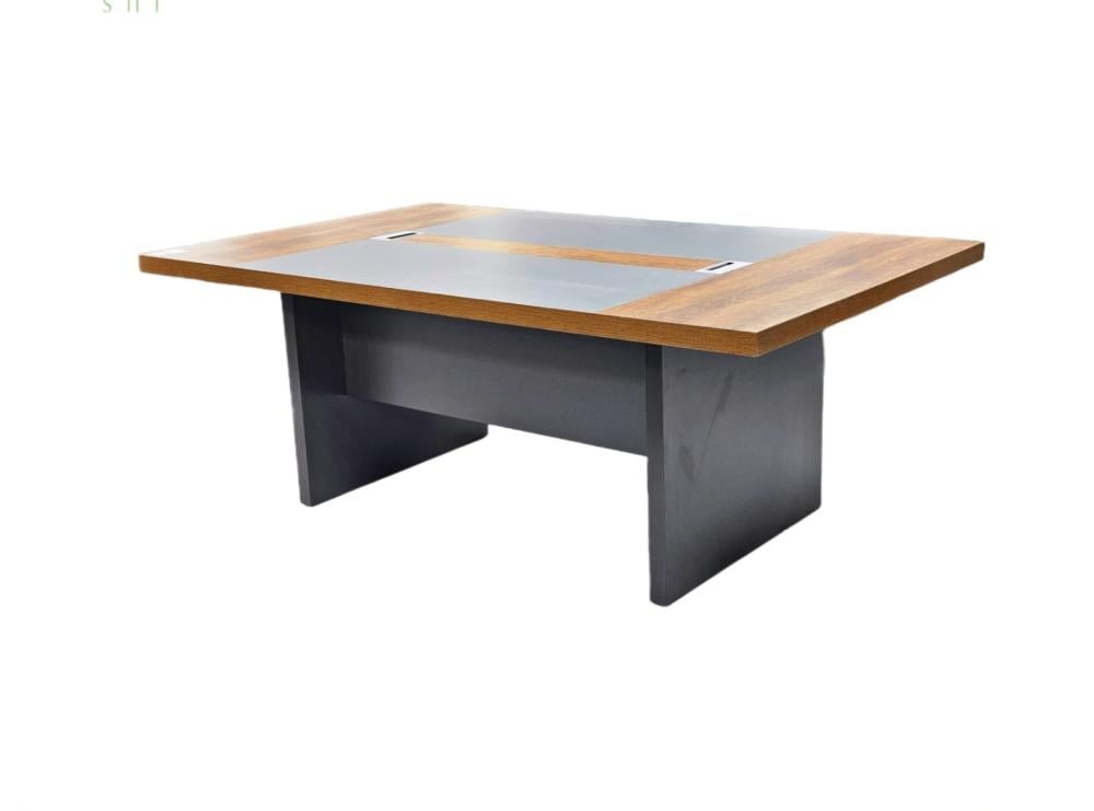 طاولة اجتماعات خشبية بتصميم عصري وأنيق، مثالية لغرف الاجتماعات في الشركات والمكاتب. تتميز بسطح واسع يجمع بين الخشب الفاخر واللون الرمادي، مما يضفي لمسة من الاحترافية على المكان. الأبعاد الكبيرة للطاولة (متوفرة بمقاسات مختلفة مثل 320x130x75 سم، 240x120x75 سم، 200x120x75 سم) تسمح باستيعاب عدد كبير من الأشخاص بشكل مريح. كما أنها مزودة بفتحة مخصصة لإدارة الأسلاك، مما يحافظ على مظهر مرتب ومنظم.