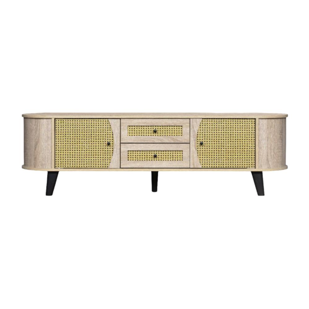 توفر هذه الطاولة سطحًا واسعًا ومثاليًا لاستيعاب أجهزة التلفاز ذات الشاشات الكبيرة، مع توفير حلول تخزين ذكية وعملية للحفاظ على المساحة مرتبة ومنظمة.
