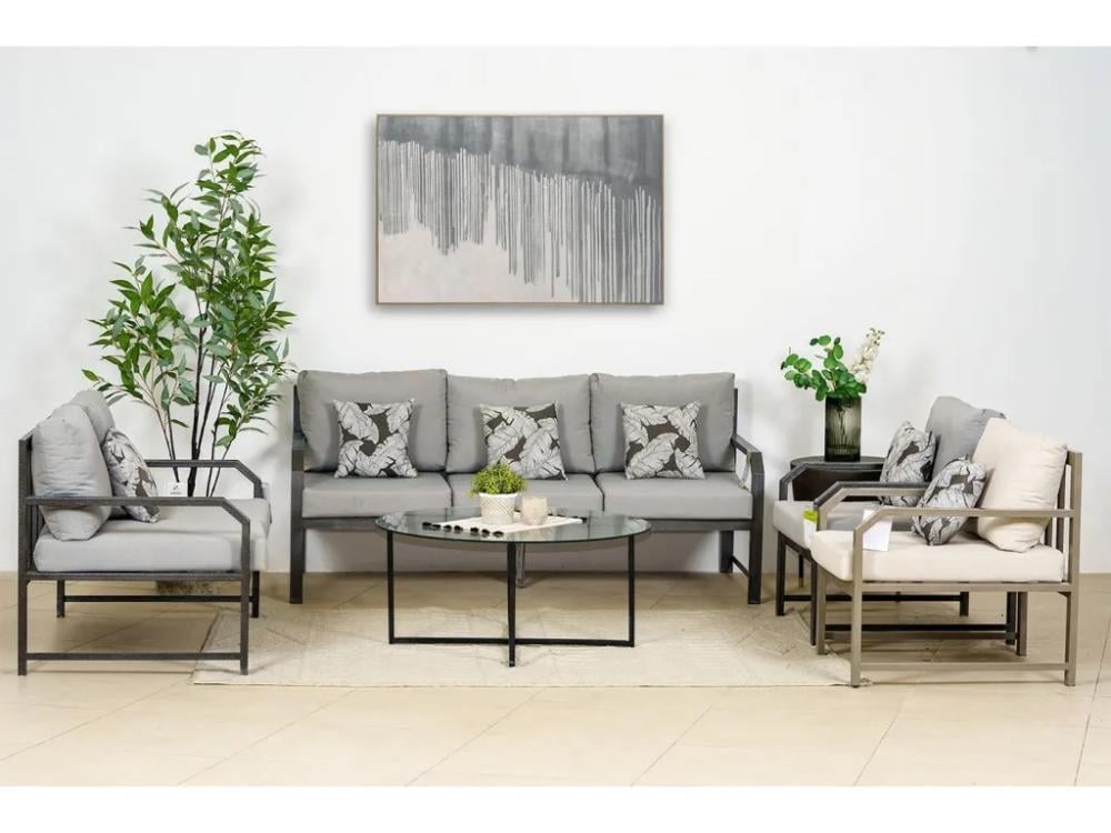 - التصميم المعاصر: تصميم الطقم عصري وأنيق، مما يجعله يناسب مختلف أنماط الديكور الخارجي.