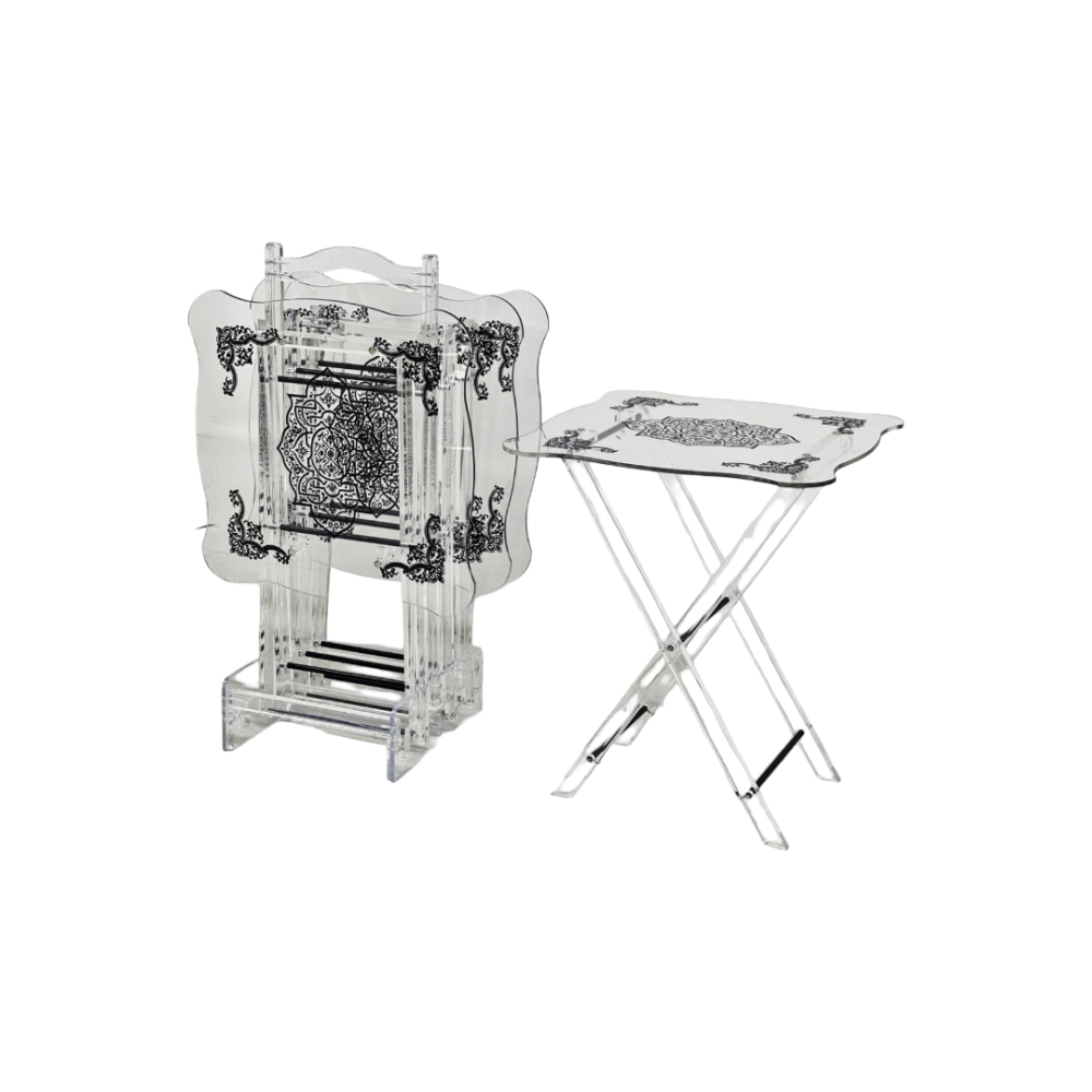 طقم طاولات أكريليك شفاف بنقوش سوداء أنيقة. طقم طاولات أكريليك شفاف بنقوش سوداء أنيقة