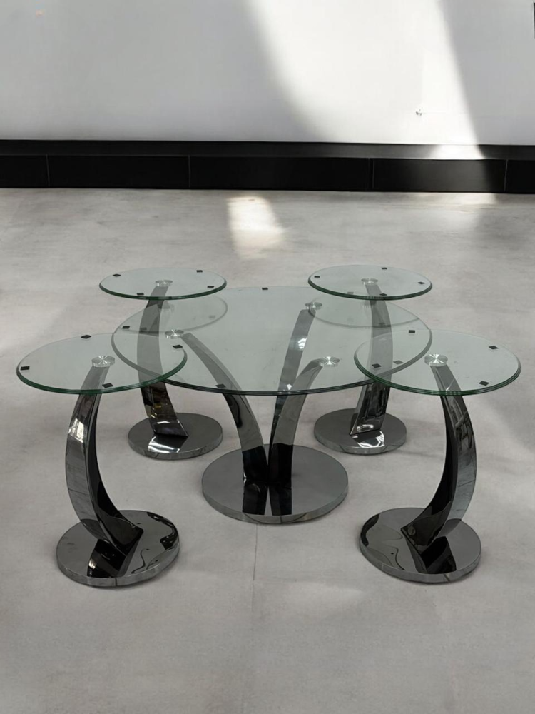 طقم طاولات خدمة استيل وزجاج-لمسة من الفخامة والأناقة في منزلك