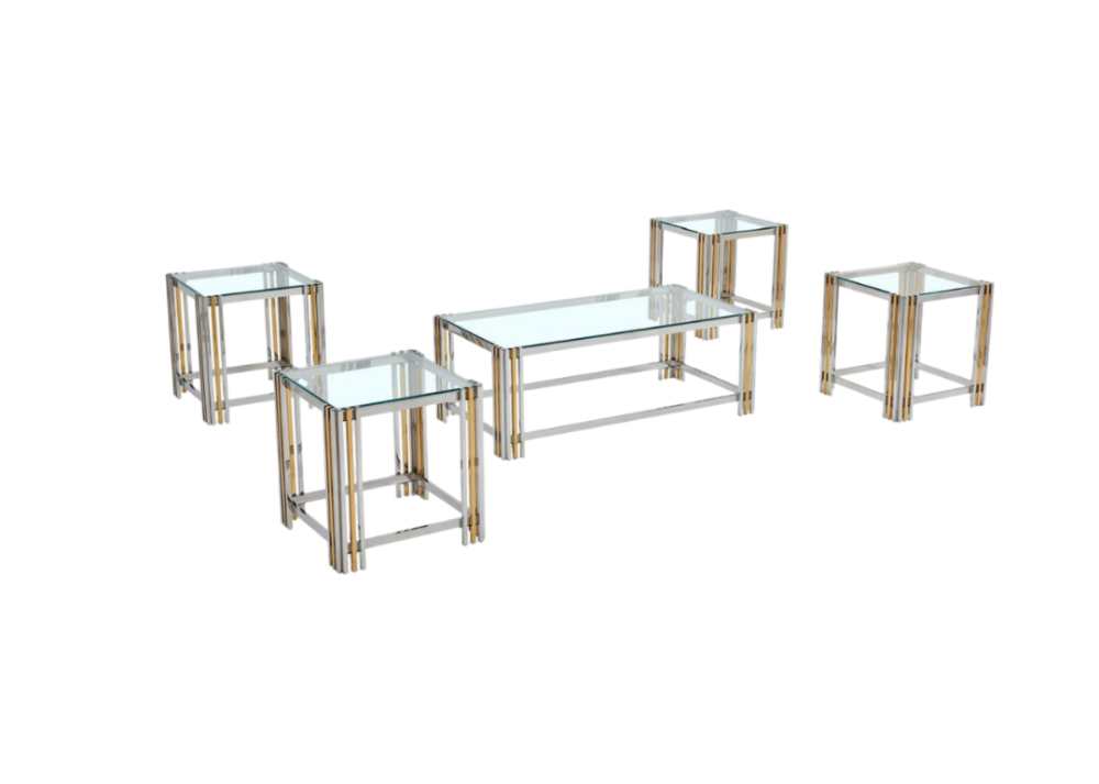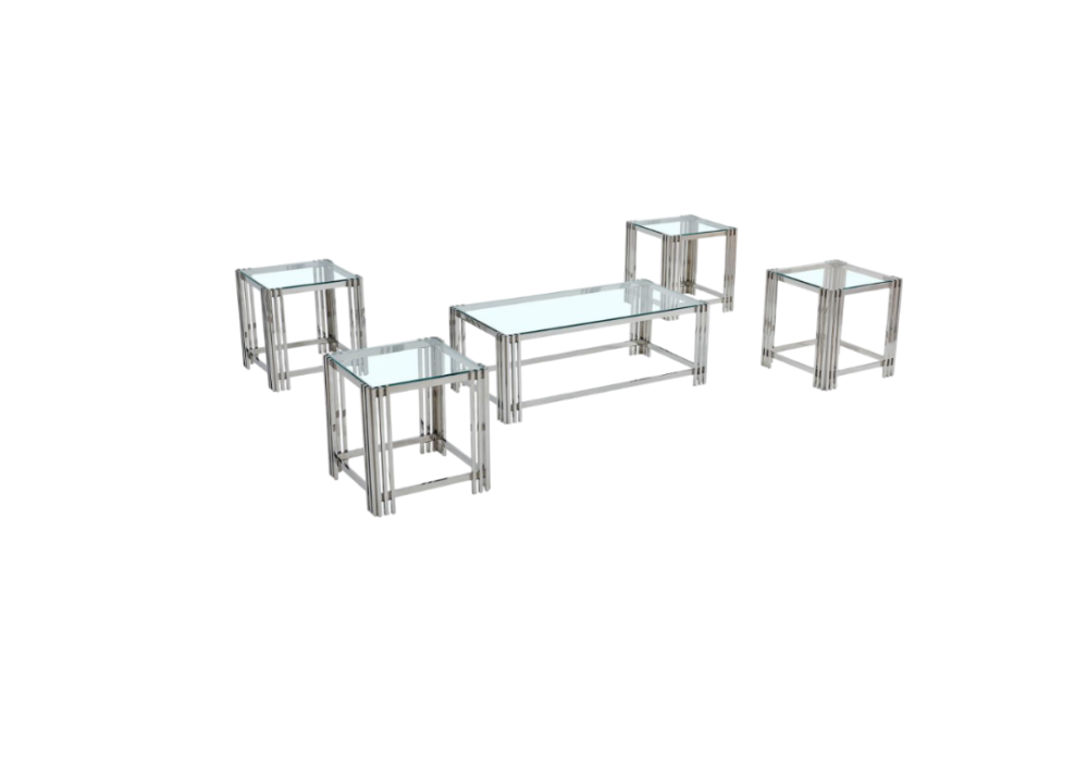 4. طقم طاولات خدمة 4+1 استيل وزجاج متعدد الاستخدامات