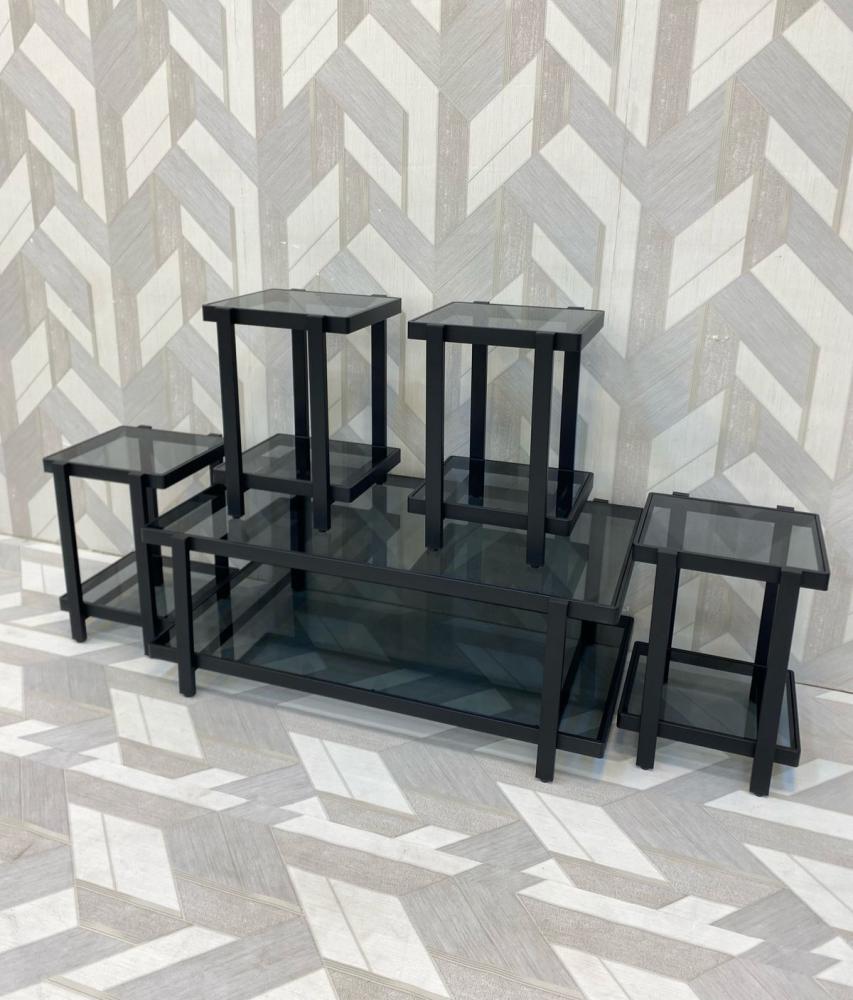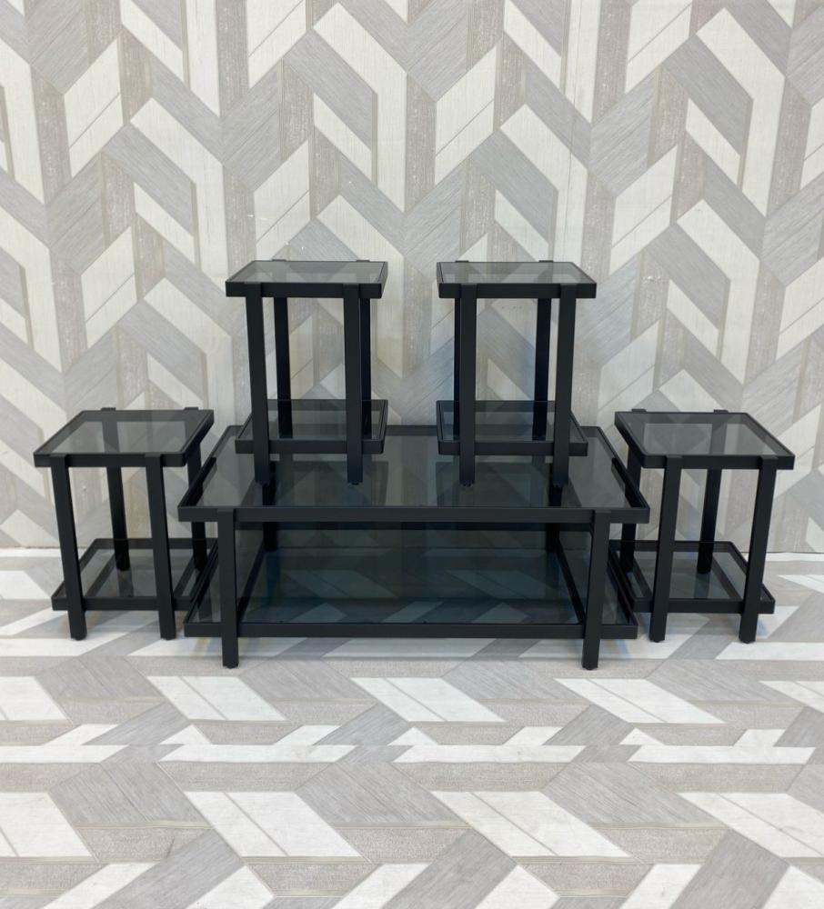 يحتوي الطقم على 5 طاولات بأحجام مختلفة، مما يجعله خيارًا عمليًا لتوفير المساحة وسهولة التخزين. يمكن استخدامها كطاولات خدمة جانبية في المجالس والصالات أو كطاولات قهوة عملية تتيح لك ترتيب الديكور بأسلوب راقٍ وممي