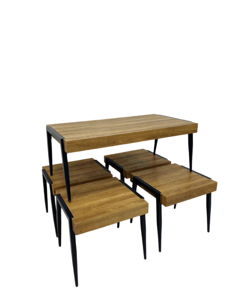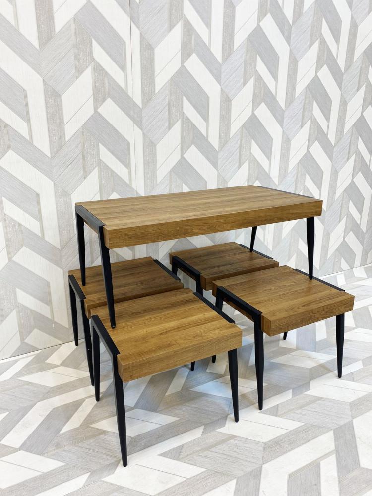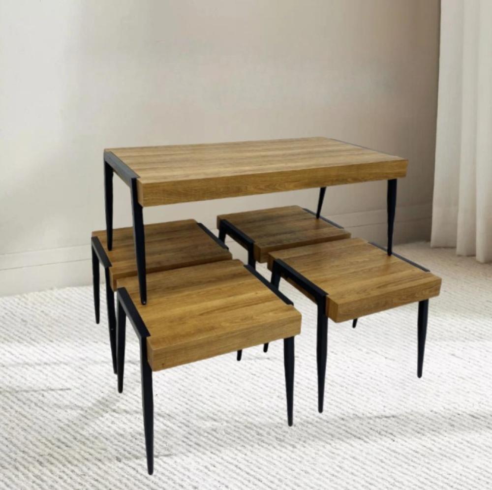 تصميم عصري وعملي: يجمع هذا الطقم بين الأناقة والوظائف، مما يجعله إضافة مثالية لأي غرفة معيشة. يتكون الطقم من طاولة مركزية مستطيلة وطاولات جانبية مربعة أصغر حجمًا، مما يتيح لك تخصيص ترتيبها حسب احتياجاتك.