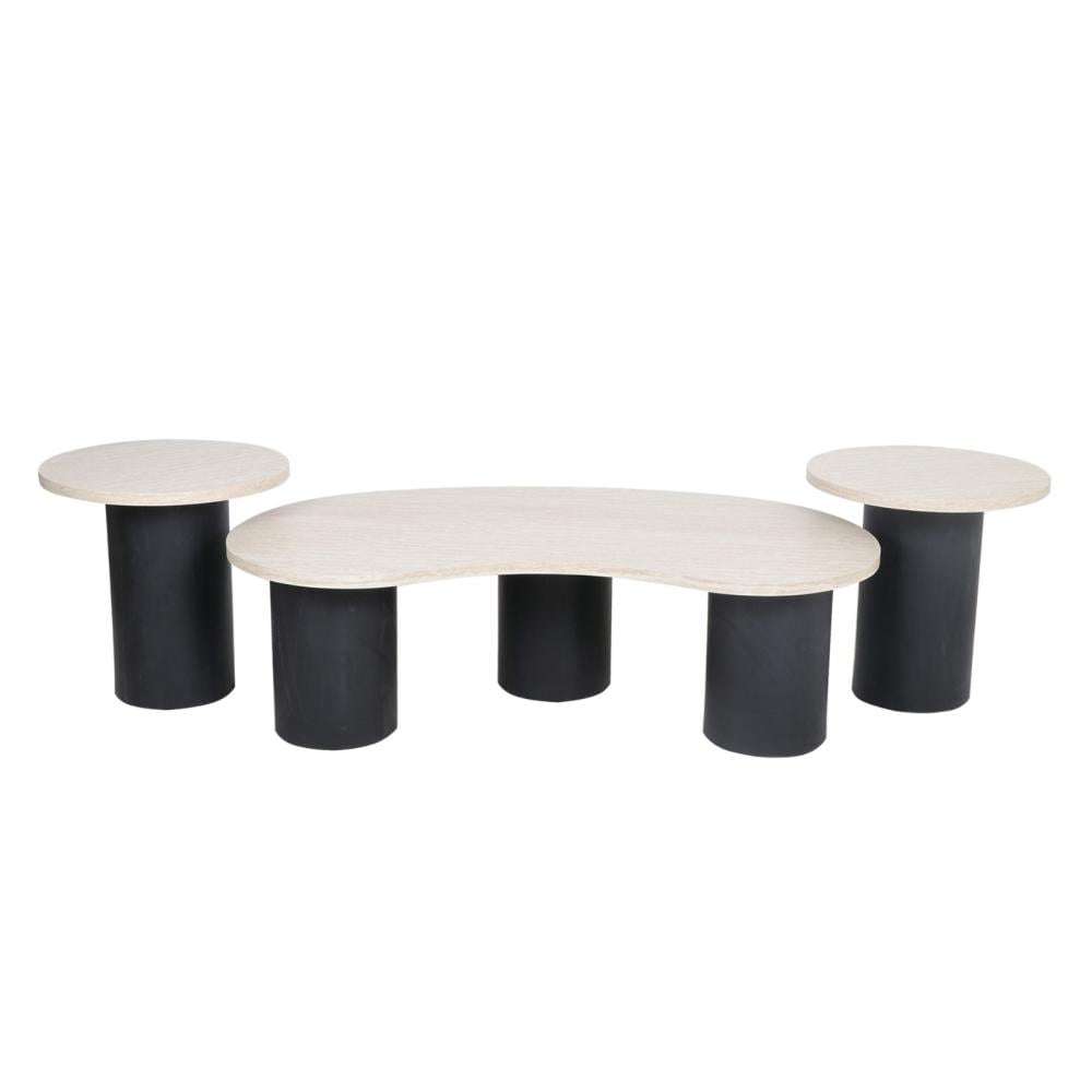 طاولتين جانبيتين: دائريتا الشكل بنفس تصميم الطاولة الرئيسية، مما يمنح تناغماً بصرياً عند الاستخدام معاً.
