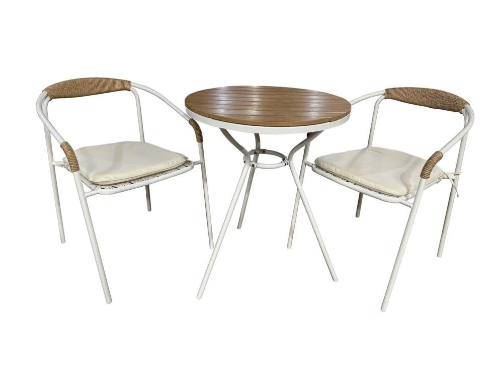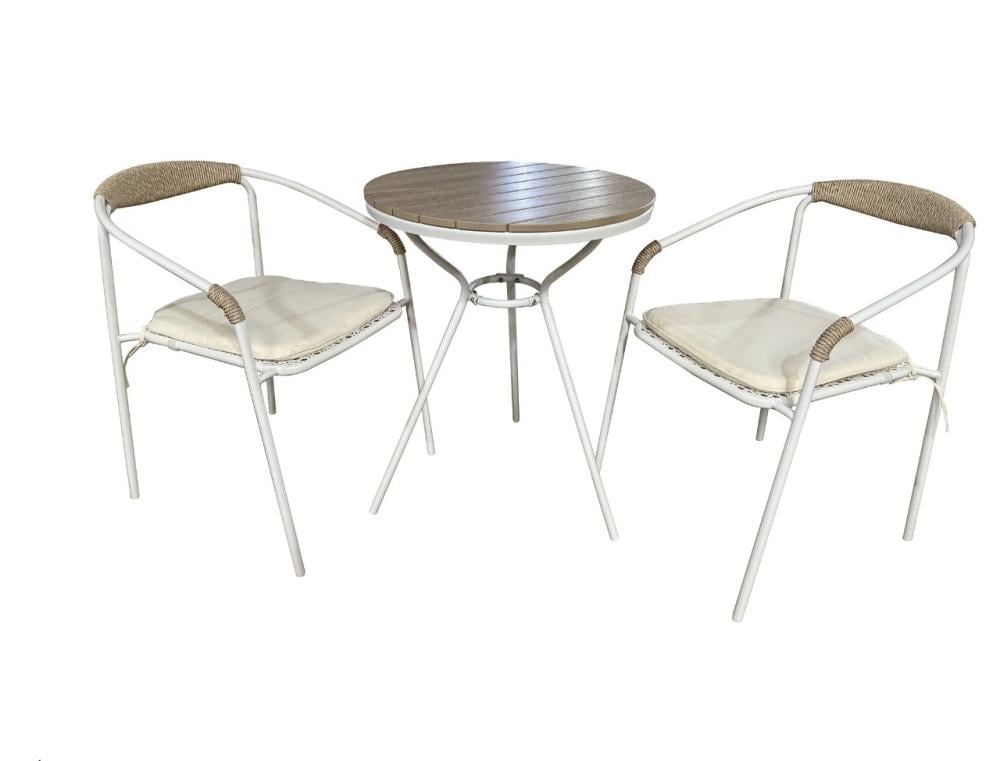 طقم جلوس خارجي مدمج: طاولة دائرية وكرسيين بتصميم راقي ومميز متوفر الان لدى متجر ديكورا