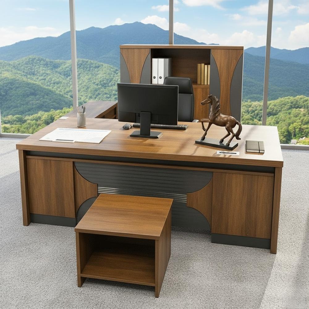 - وحدة جانبية ملحقة متعددة التخزين: تتضمن أدراجًا ووحدات تخزين مغلقة لتنظيم الملفات والأوراق واللوازم.