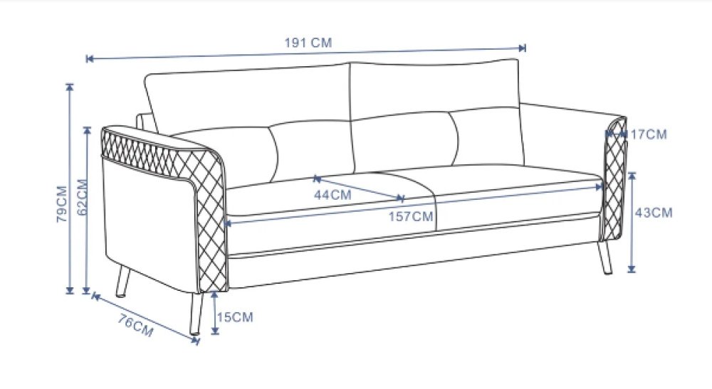 - كنبة بثلاثة مقاعد: توفر مساحة جلوس واسعة لعدة أشخاص.