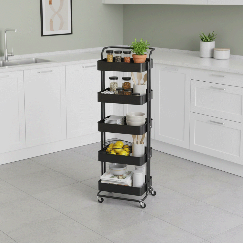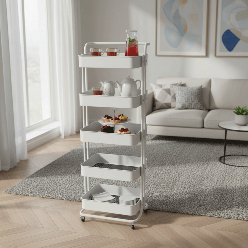 • النوع: عربة تخزين بعجلات مكونة من 5 رفوف.