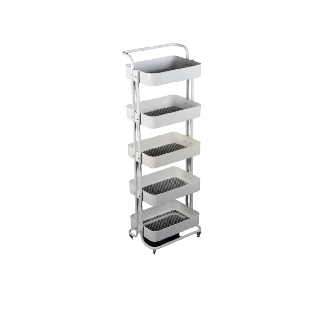 - النوع: عربة تخزين بعجلات مكونة من 5 رفوف.