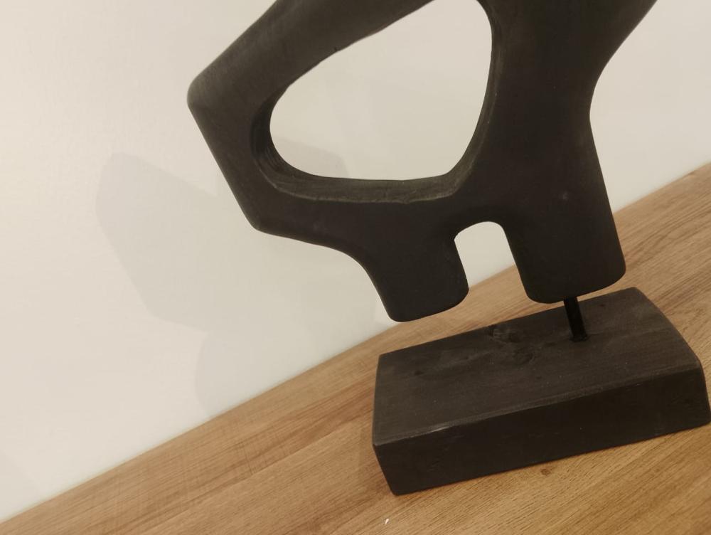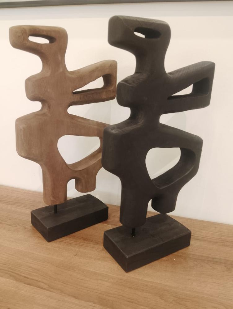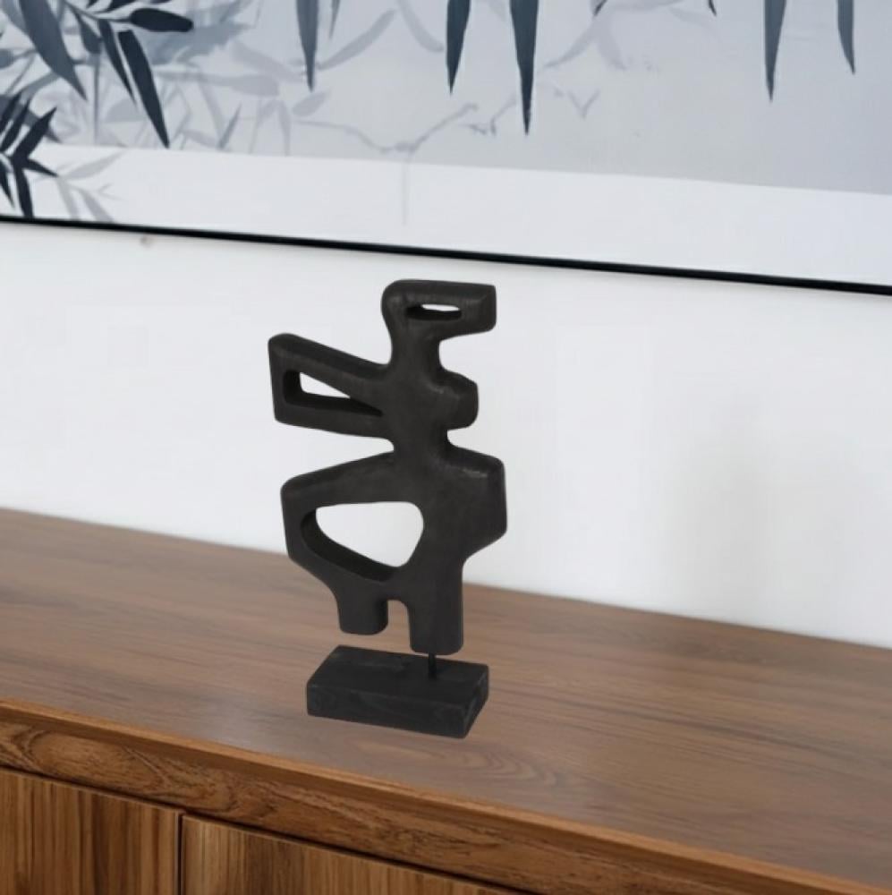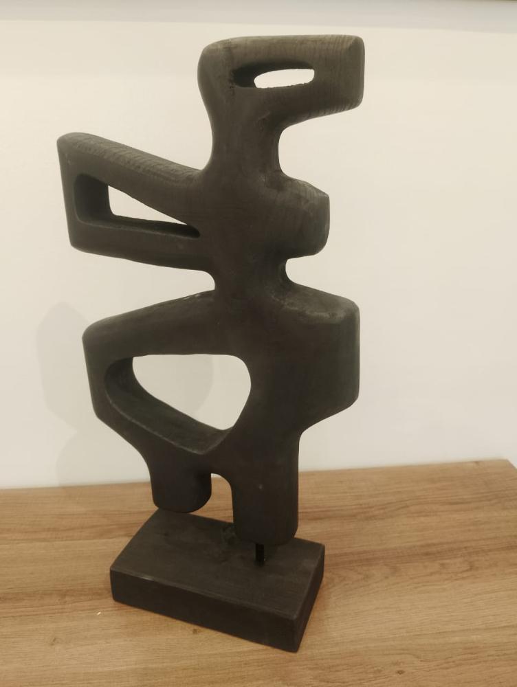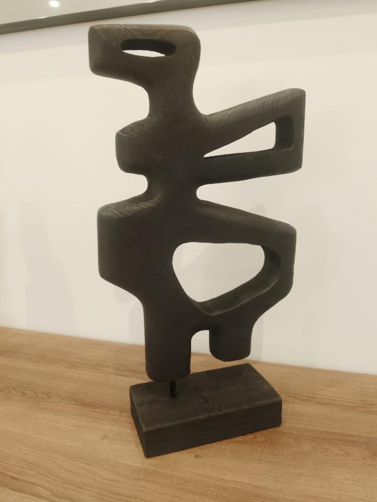 قطعة ديكور خشبية فنية بتصميم تجريدي معاصر، تتميز بأشكال هندسية متداخلة ومتموجة تخلق تكويناً فنياً مبهراً. مصنوعة من الخشب الطبيعي المصقول ومثبتة على قاعدة معدنية سوداء أنيقة. تجمع بين الحرفية التقليدية والفن المعاصر في قطعة واحدة مميزة، متوفرة بلونين: الجوز الطبيعي والأسود الكامل.