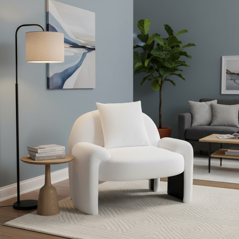 ١٬٠٨٤٫٤٥كرسي بوكليه بتصميم مودرن - لون أبيض ناصع لإضافة لمسة من الأناقة والراحة إلى منزلك