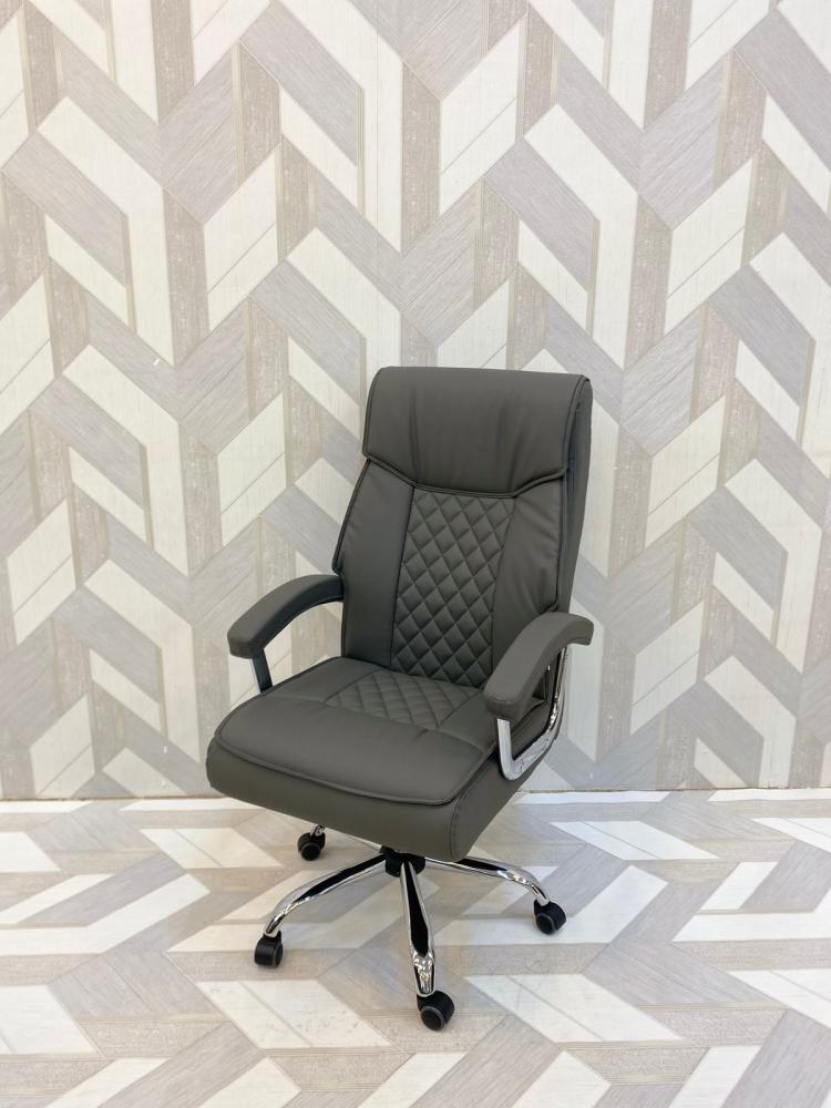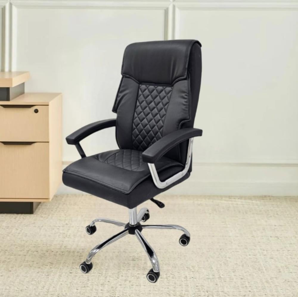 كرسي مكتبي فاخر بتصميم عصري ومريح، مثالي لإضفاء لمسة من الأناقة والاحترافية على مساحة العمل. يتميز الكرسي بتنجيد سميك من الجلد الفاخر بألوان جذابة (بنى ، أسود، جملى ورمادي). يتميز مسند الظهر بتصميم مبطن بخطوط أفقية أنيقة، مما يوفر دعماً مثالياً للظهر. القاعدة المعدنية القوية ذات العجلات الخمس تضمن سهولة الحركة والثبات، مما يجعله الخيار الأمثل لساعات العمل الطويلة.