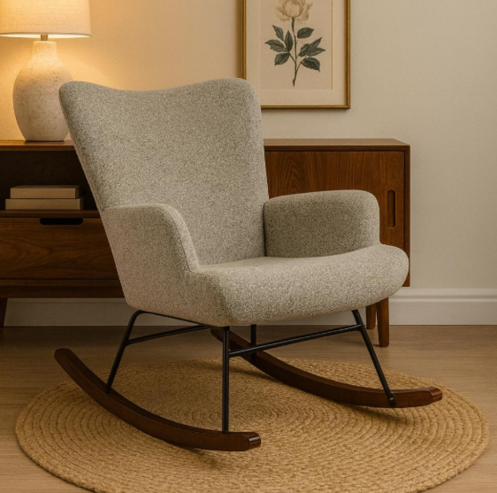 هل تبحث عن لمسة راقية تضيف الراحة والجمال لمنزلك؟ تقدم لك ديكورا هذا الكرسي الهزاز الفاخر الذي يجمع بين التصميم العصري والأداء العملي. مع تنجيد ناعم من قماش البوكليه الراقي وقاعدة هزازة خشبية بلون بني دافئ، يصبح هذا الكرسي المكان المثالي للاسترخاء في أي وقت من اليوم. سواء كنت تستمتع بكتاب، ترضع صغيرك، أو تحتاج إلى لحظة هدوء، فإن كرسي ديكورا يمنحك دعمًا فائقًا وراحة لا مثيل لها.