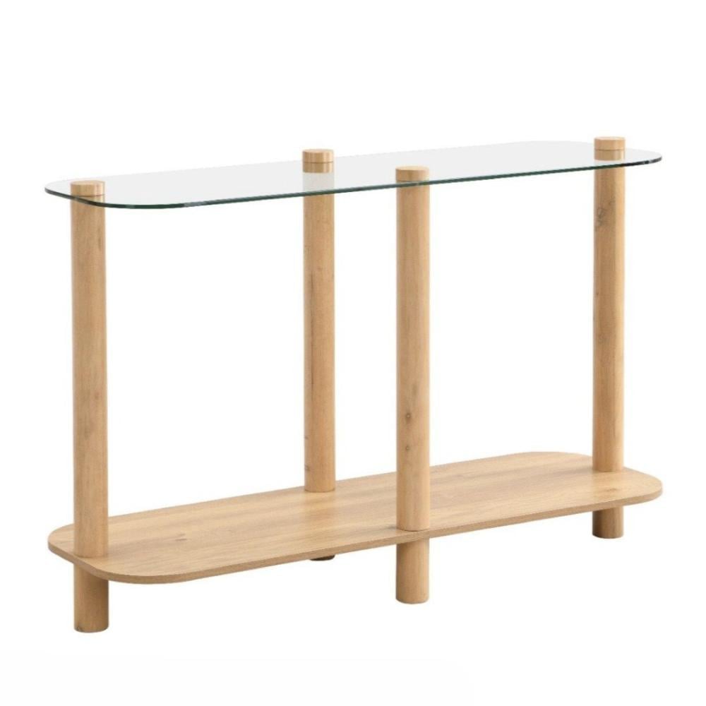 اضف لمسه عصريه وانيقه لمدخلك مع كنسول مصمم بتصميم مميز وفاخر متوفر بلونين جذابين تصميم يجمع بين البساطه والفخامه بفضل دمج الخشب الطبيعى مع سطح زجاجى انيق يمنح مدخلك اطاله راقيه تعكس ذوقك العصرى
