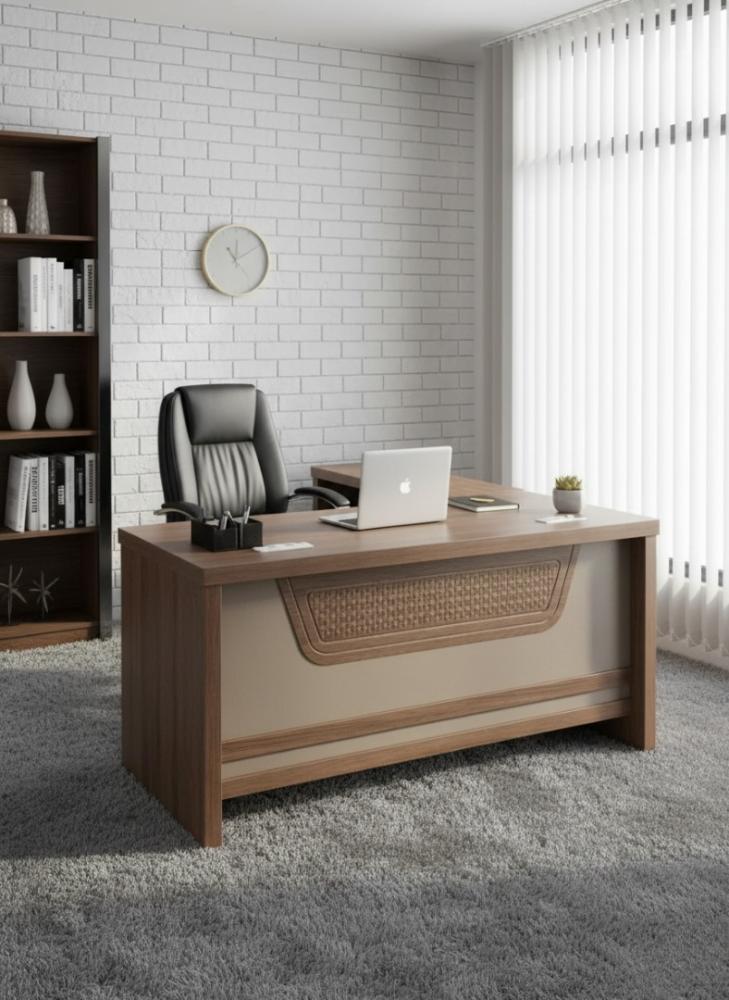 ارتقِ بمستوى إنتاجيتك وأناقة مساحة عملك مع هذا المكتب الإداري العملي والمتين، المتوفر بأربعة مقاسات عملية - 120، 140، 160، و 180 سم - ليناسب مختلف الأحجام والاحتياجات، والذي يتميز بسطح عمل واسع ومنظم لإنجاز المهام بكفاءة، ووحدات تخزين جانبية تتضمن أدراجًا بقفل مركزي لحفظ الملفات الهامة بأمان وسهولة الوصول إليها، بالإضافة إلى تصميم مريح وعصري مع فتحات مخصصة لتمرير الكابلات للحفاظ على مظهر نظيف ومرتب، ومصنوع من مواد عالية الجودة تضمن الاستدامة والتحمل، مما يجعله الخيار الأمثل للمكاتب الرئيسية، العمل من المنزل، أو حتى كمكتب استقبال أنيق.