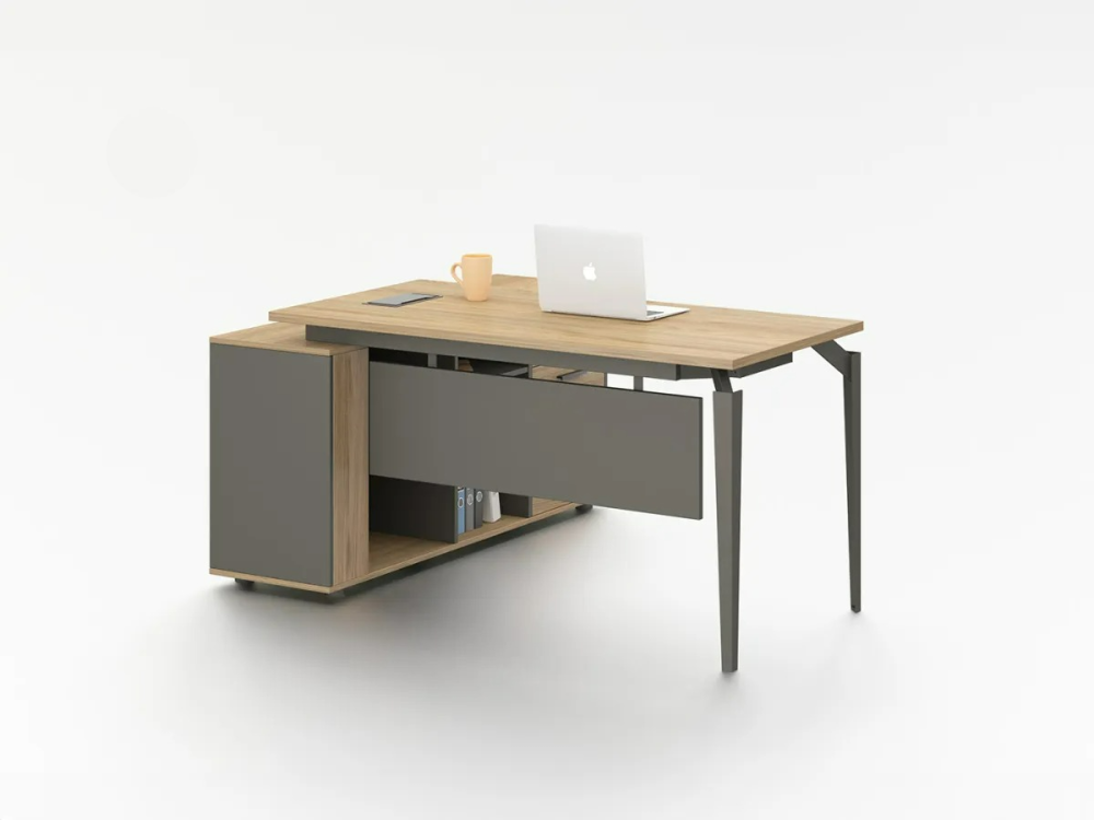 تصميم عصري: يتميز المكتب بتصميم عصري وأنيق يجمع بين اللونين البيج والرمادي، مما يضفي لمسة من الدفء والرقي على أي مساحة عمل.