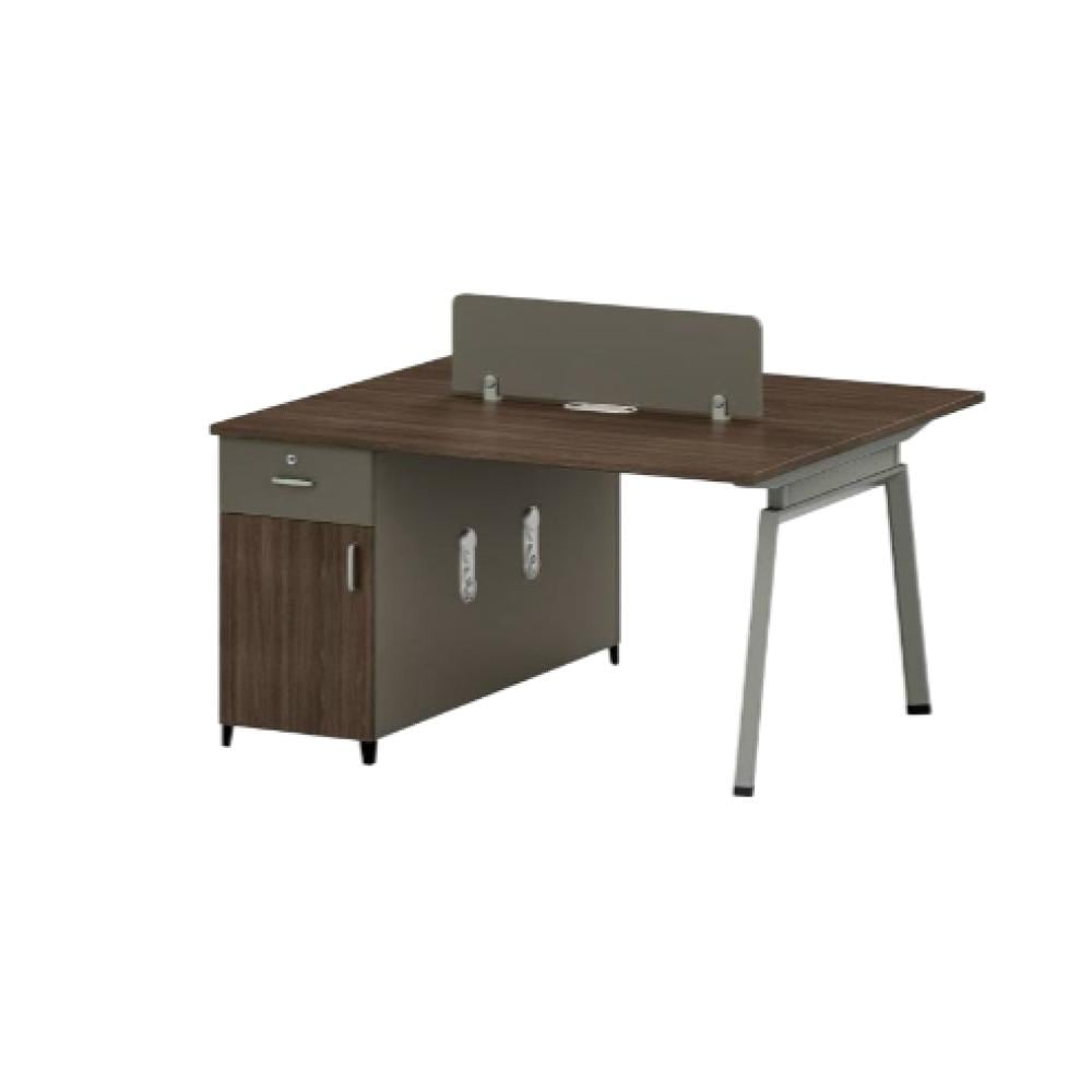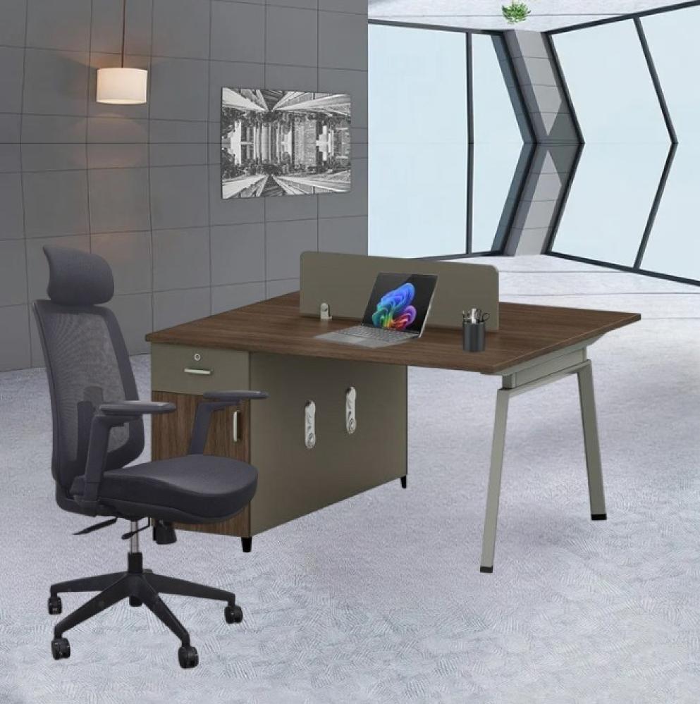 يتميز هذا المكتب العملي بتصميمه العصري الذي يجمع بين الأناقة والوظيفة، مما يجعله خيارًا مثاليًا لمساحات العمل المشتركة أو المكاتب المنزلية التي تتطلب منطقة عمل لشخصين. يتكون المكتب من سطح علوي واسع مصنوع من الخشب الميلامين المتين بلون بني أنيق، مما يوفر مساحة كافية لأجهزة الكمبيوتر المحمولة، والملفات، وغيرها من اللوازم المكتبية.